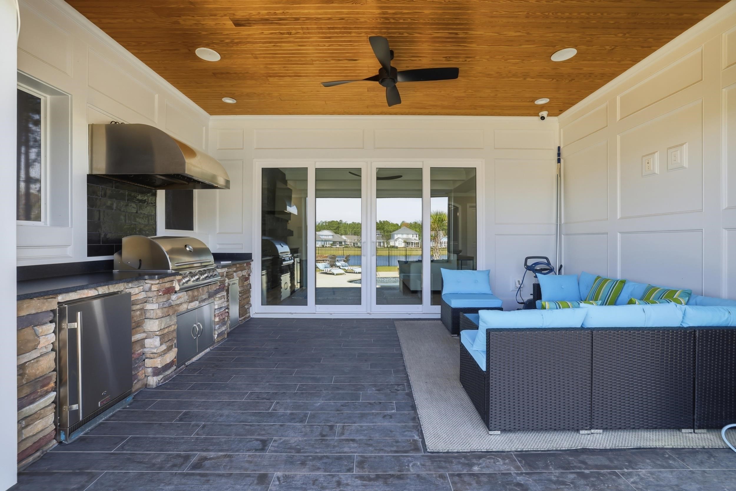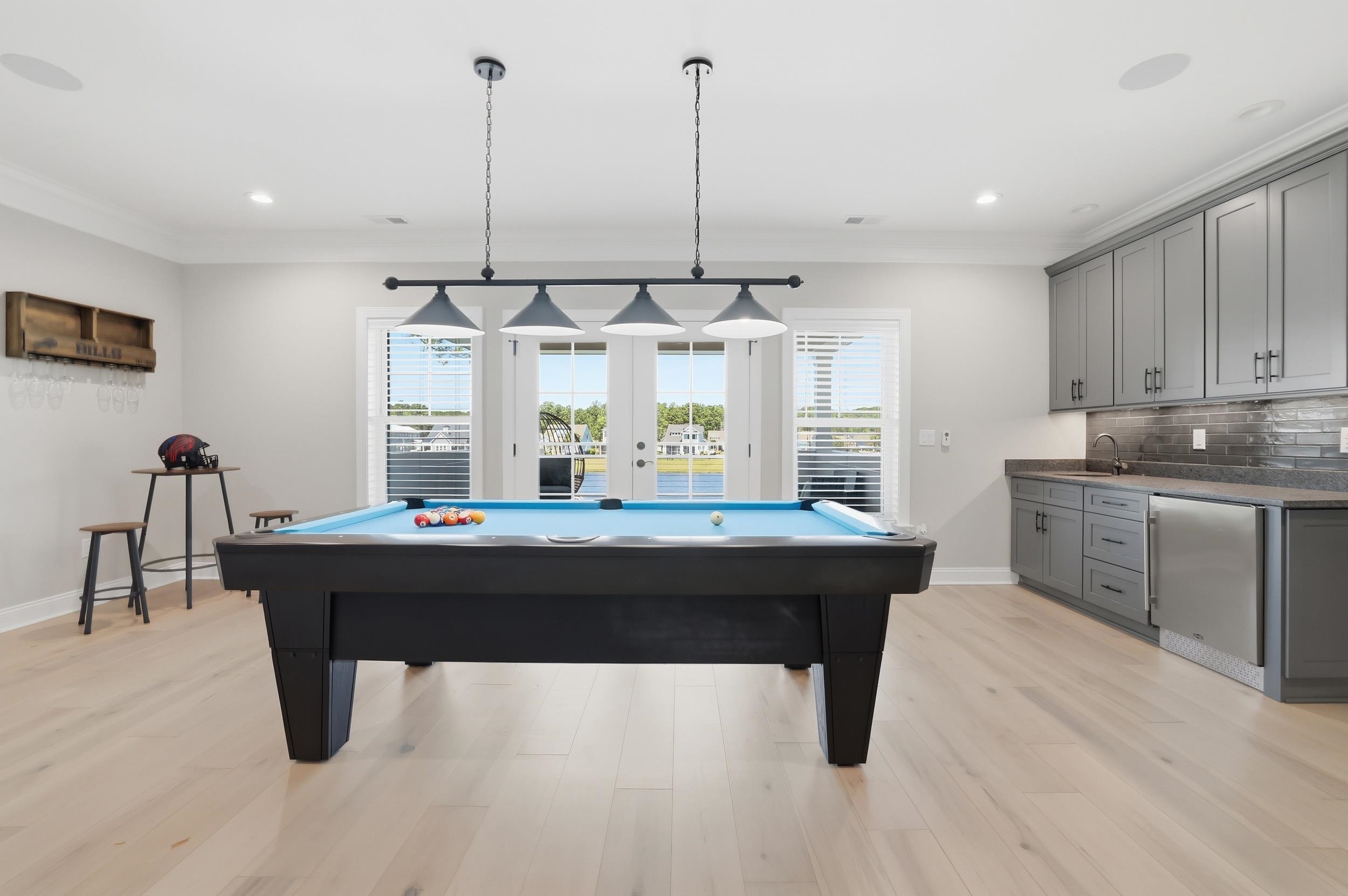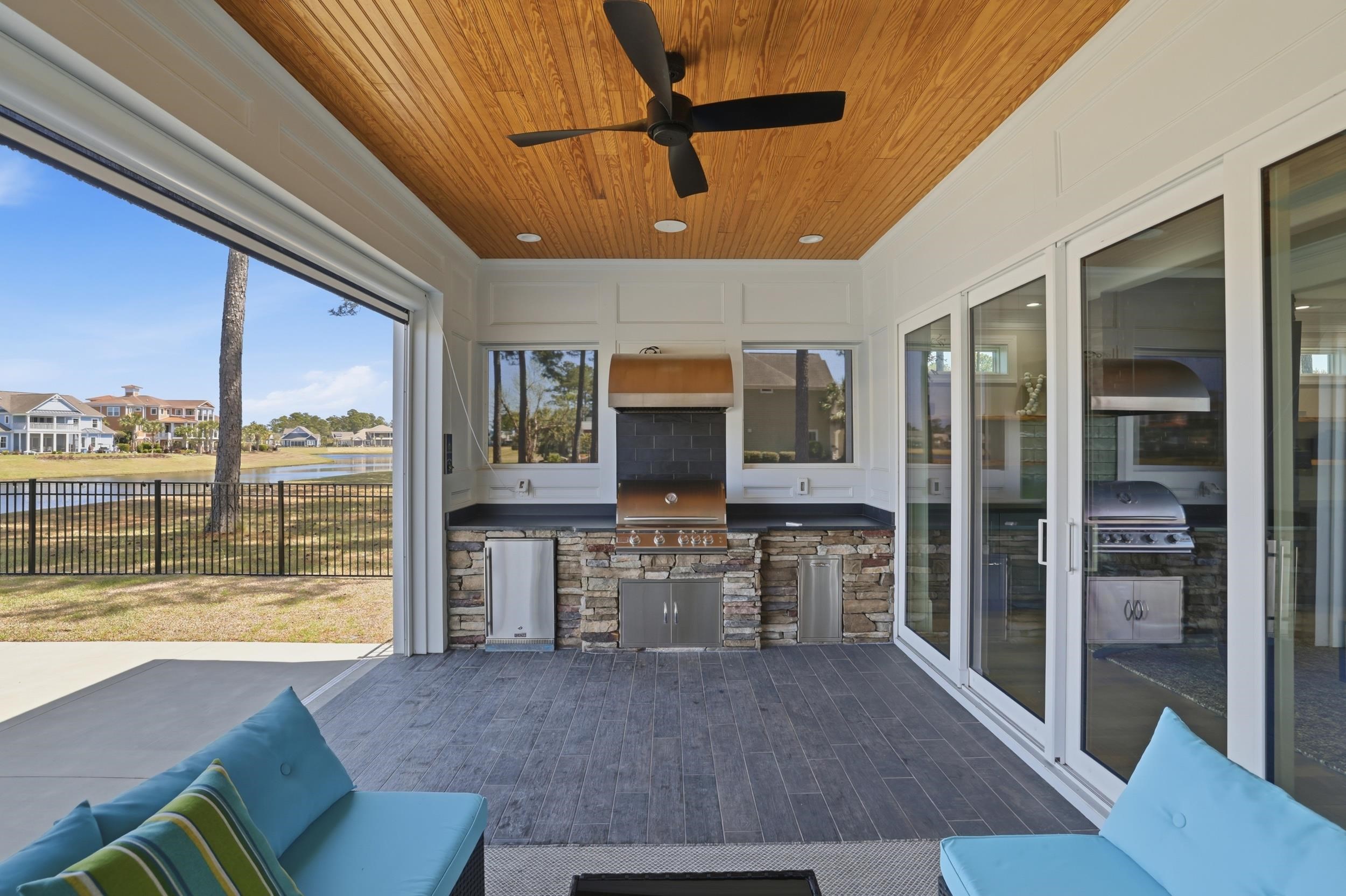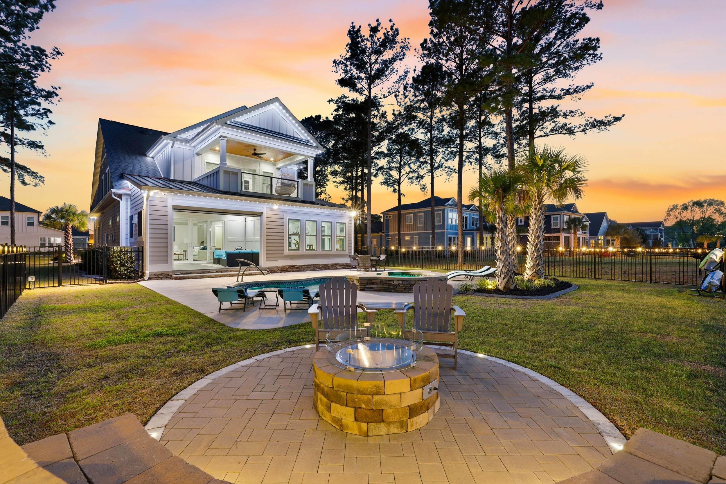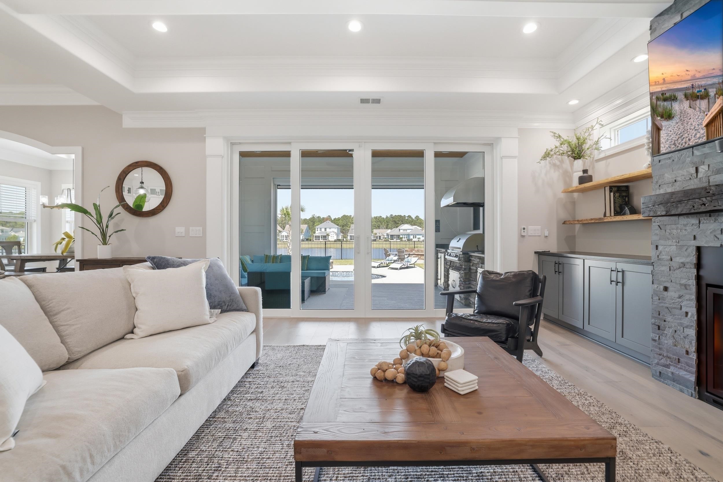 This thoughtfully designed custom home is located in the highly sought-after Waterbridge community. Built in 2022 and meticulously maintained, 1179 Fiddlehead Way offers an exceptional blend of elevated design, functional living, and resort-style private and community amenitiesall set against a serene lake backdrop. From the moment you enter, youre welcomed by a beautiful foyer featuring a barrel ceiling, setting the tone for the craftsmanship and attention to detail found throughout. Soft maple flooring flows seamlessly through the main living areas and into the primary suite, while matte black finishes, custom trim work, bullnose corners, and 8-foot doors throughout the home add a modern, sophisticated touch. Four designated bedrooms provide plenty of space for the whole family. Youll find a spacious primary suite on the main level, along with a secondary bedroom and full bathroomideal for guests or multi-generational living. The primary suite is a true retreat, offering a large custom closet thoughtfully designed with built-in storage and organization, along with a spa-like bathroom featuring a generous custom-tiled shower, double vanity, and private water closet. The heart of the home is designed for both everyday living and entertaining. The kitchen is anchored by a large L-shaped island, finished with durable honed granite, that comfortably seats four. Cook with ease on gas cooktop and enjoy ample prep space on the white quartz countertops along the perimeter. Under-cabinet lighting, a custom-stained wood hood, a large pantry, and ample cabinetry set the standard. Just off the kitchen, a bright dining area is filled with natural light and showcases beautiful lake views. Grab a drink from the adjacent wet bar and relax in the modern yet cozy living room, which features a stunning fireplace with a modern stone surround and custom black mantle, flanked by custom shelving and base cabinetry. Eight-foot sliding glass doors open seamlessly to an all-seasons roomperfect for enjoying indoor-outdoor living year-round. Upstairs, two additional bedrooms provide privacy and flexibility, complemented by a large bonus roomapproximately 350 square feetand an adjacent flex space perfect for a home office, gym, or media room. Down the hall, a spacious recreation room features yet another wet bar and a powder bath for guests. French doors lead to a covered balcony with modern cable railing, offering an additional outdoor entertaining space with stunning aerial views of the backyard retreat and tranquil lake. The home is equipped with a four-zone sound system spanning both levels and exterior spaces, as well as security cameras, adding both convenience and peace of mind. The outdoor space is nothing short of exceptional. A custom pool with a water featurecapable of both heating and coolingtakes center stage. Unwind in the hot tub, gather around the fire pit overlooking the lake, or entertain with ease in the outdoor grilling area complete with a retractable electric screen, creating the ultimate four-season experience. Custom outdoor lighting sets the mood for evening entertaining, and the home, pool, and hot tub lighting can all be programmed to change colors with the seasons. The pool can also be heated or cooled with ease from your phoneenjoy it year-round. Situated directly on the lake, this home offers true waterfront livinglaunch your kayak right from your backyard and enjoy peaceful mornings or sunset paddles on the water. The side-load, two-car garage is equally impressive, featuring epoxy flooring, a slat wall system, tower cabinetry, and storage racks designed with organization in minda neat freaks dream! Located within one of Myrtle Beachs premier gated communities, residents of Waterbridge enjoy resort-style amenities including the largest residential community pool in South Carolina, tennis courts, pickleball courts, bocce, and a community dock. This is a must-seeschedule your showing today!