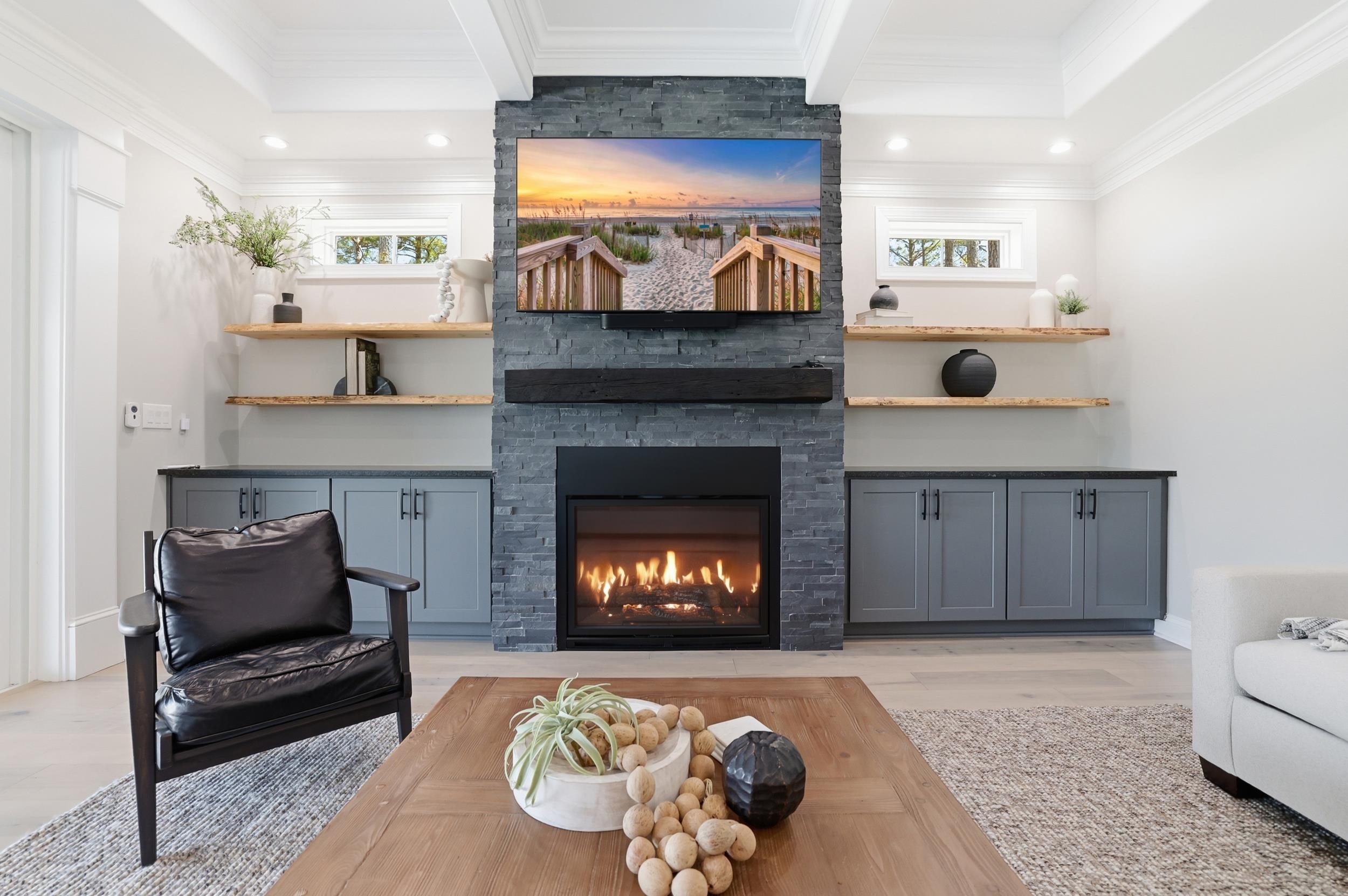 LivingRoom: BeamedCeilings, CeilingFans, Fireplace, Bar