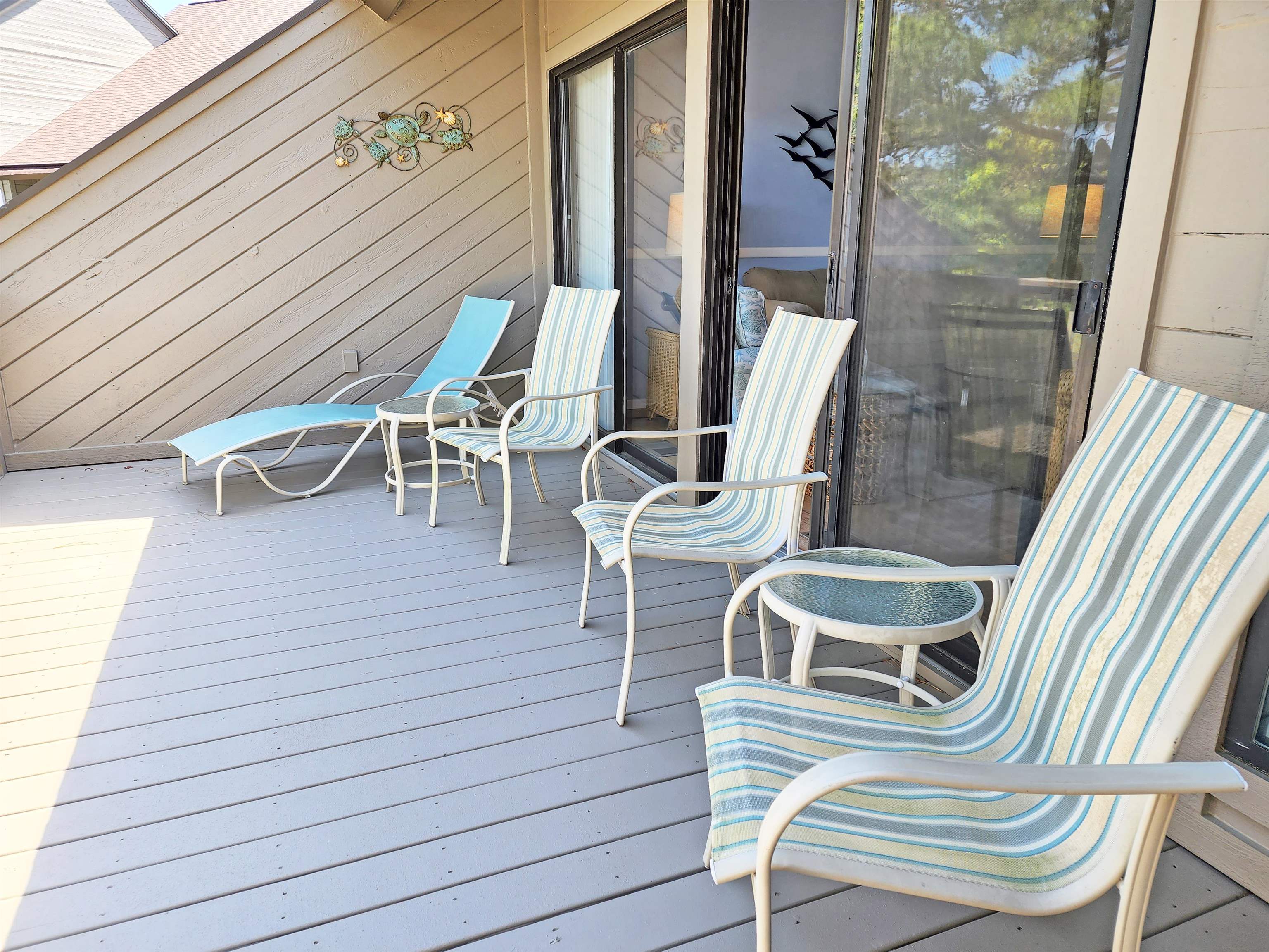 Beautifully updated villa with sundeck overlooking the lake at Litchfield by the Sea. Heron Marsh #74 is a two story villa with parking underneath. Nicely furnished throughout, the main floor has the living area with vaulted ceiling and a wall of glass windows and sliding door that opens to the sundeck and view. The is a dining area as well as a breakfast bar. The updated kitchen has granite counter tops, stainless appliances. The main floor also features one bedroom and one bath. There is a king bed in the main floor bedroom. The main floor bath has been remodeled and has a tiled walk-in shower. Upstairs is one bedroom and one bath. The bedroom features 2 queen beds and there is a twin bed in a small room off bedroom 2 for additional sleeping arrangements. The updated 2nd bath has a tub/shower combination with tile surround and glass enclosure. The carport area has an outdoor shower for rinsing off the sand after a day on the beach. This villa is just a short 4 minute walk to the beach access, the pool and tennis courts.