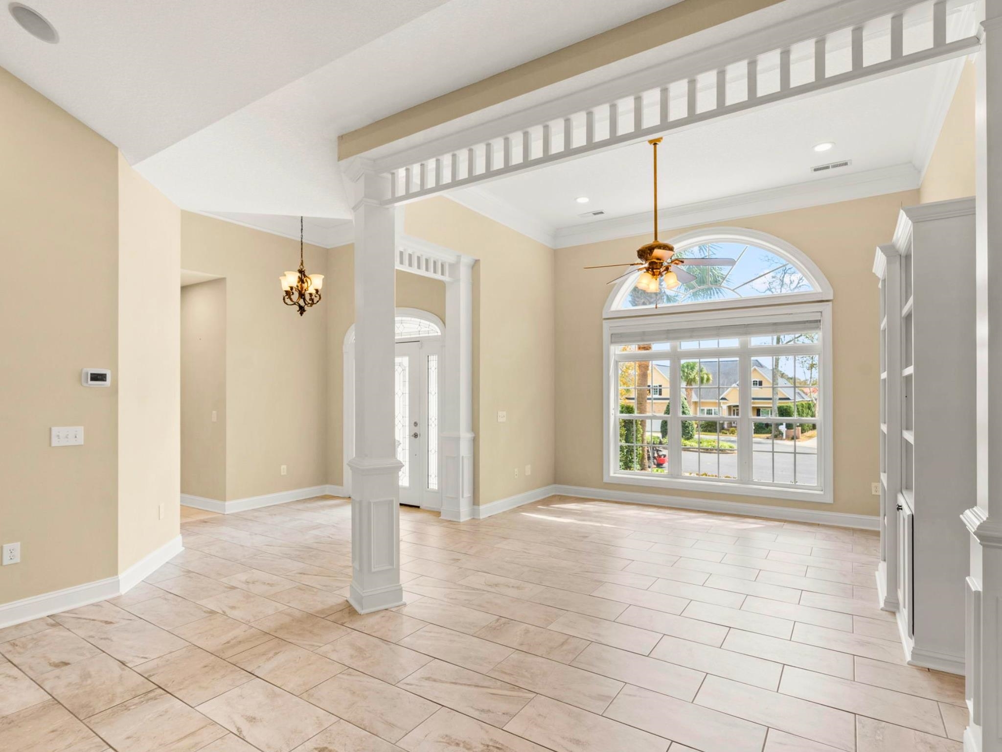 Experience a residence defined by custom craftsmanship and a prime location in one of North Myrtle Beach's most prestigious gated communities- Seaside Plantation. This all-brick, four-bedroom home features a versatile floor plan designed for effortless transitions between coastal relaxation and sophisticated entertaining. Situated just two short blocks from the Atlantic Ocean, the property offers the rare combination of a quiet residential setting with immediate access to the beach, high-end shopping, and world-class dining. Meticulous attention to detail is evident throughout the interior, anchored by floor-to-ceiling windows that provide maximum natural light across the open-concept living spaces. The gourmet kitchen is functional elegance, featuring granite countertops, premium Maytag stainless appliances, a gas range, and a spacious dining area. High-end finishes abound, including custom built-in cabinetry, designer trim, and crown molding that extends through the foyer and master suite. The primary suite serves as a private retreat, featuring an expansive layout, a walk-in closet with custom shelving, and a spa-like bathroom complete with a soaking tub and a large stand-up shower. Two additional guest bedrooms feature tray ceilings, while the large bonus room over the garage provides a flexible space for a fourth bedroom or media lounge. Reflecting a commitment to technical stewardship, the home's infrastructure includes a stand-by generator with a transfer circuit, an updated ADA-compliant bathroom layout, and a custom fireplace with direct-vent gas logs. Outside, the professional landscaping is punctuated by mature live oaks and palmetto trees, all maintained by a full irrigation system. The rear porch features a large patio with a Sunshade and an outdoor shower, creating the perfect environment for enjoying the coastal air. As a resident of this exclusive gated enclave, you will enjoy access to a premier amenity center, including a swimming pool, heated spa, and golf cart parking, all located just moments from the beach. This residence is offered fully prepared for its next owner, combining the durability of brick construction with the refined aesthetics of a custom coastal home.