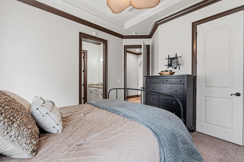 PrimaryBedroom: TrayCeilings, CeilingFans, MainLevelPrimary, WalkInClosets