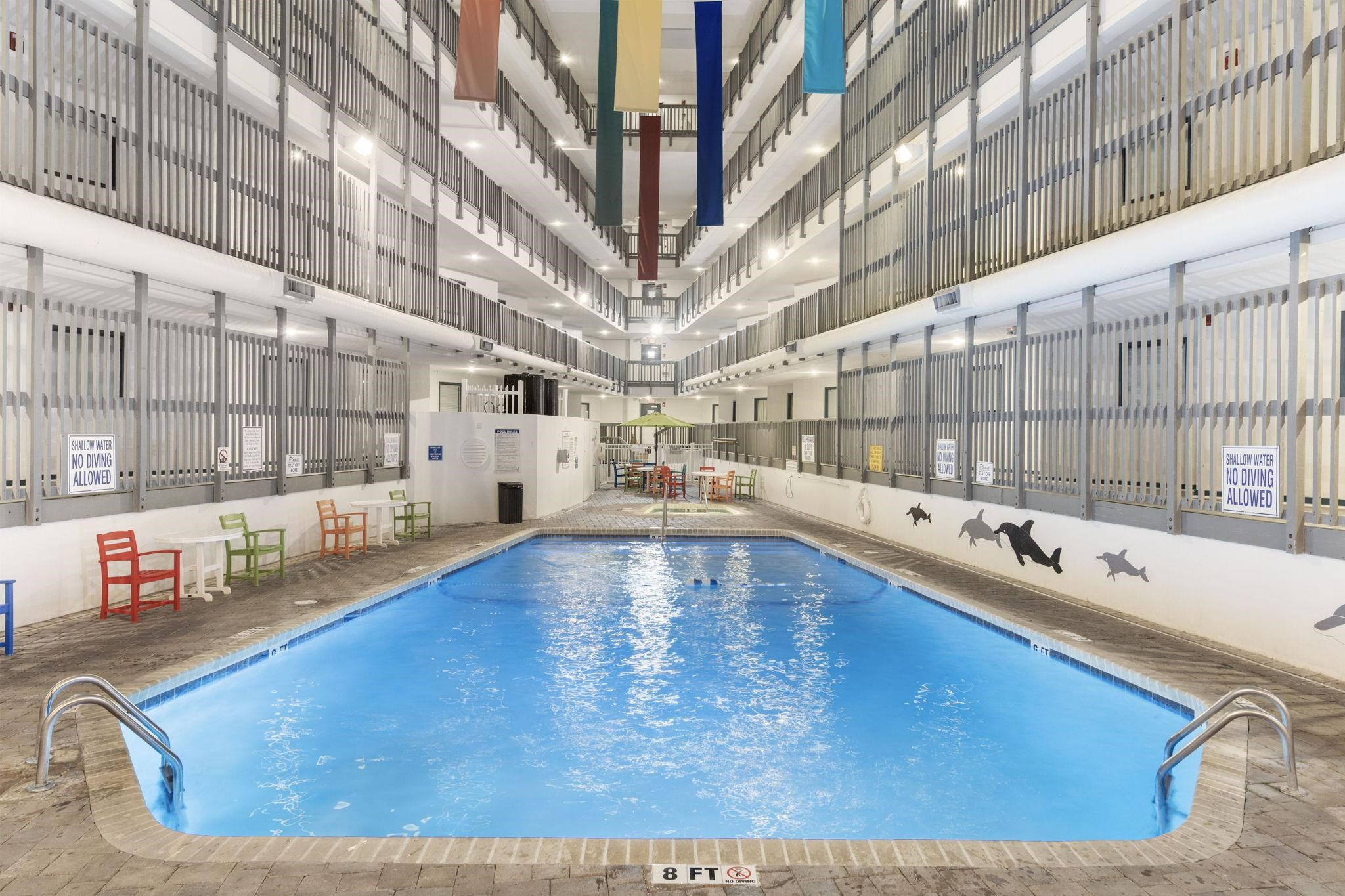 Enjoy beach life in this beautiful ocean view condo located in the popular Myrtle Beach Resort. This is a well maintained 2 bedroom, 2 bath condo that has been recently updated to feature an open concept layout in which. the kitchen, dining room, and living room flow together nicely. The kitchen features modern shaker style cabinets with ample storage, granite countertops, blue glass backsplash and a farmhouse sink. Dining room offers ample seating for you and guests. The living room is appointed with comfortable furnishings including a newer leather sofa, coastal decor, and an electric fireplace for year round enjoyment. This condo is located at a corner so it offers an additional window in the living room., Blinds and curtains adorn the windows and sliding doors for cohesive, tasteful appearance. The Myrtle Beach Resort is a 33 acre oceanfront resort offering numerous amenities, including indoor and outdoor pools, lazy river, hot tubs, gyms, basketball court, tennis courts, horseshoes, cornhole, club house, onsite necessity shop, snack stands, NY Pizza, Stella's Ice Cream, a private owners lounge, and so much more! Enjoy meals, drinks, and entertainment at the onsite bar and grill, the Quarter Deck, voted Best on the Beach! Everything you need for a great beach vacation is right here! The condo may be used as a primary home, second home, or investment property as it allows short term and long term rental. The Myrtle Beach International Airport and area attractions are just a short drive away. Schedule your showing now and let beach life begin!
