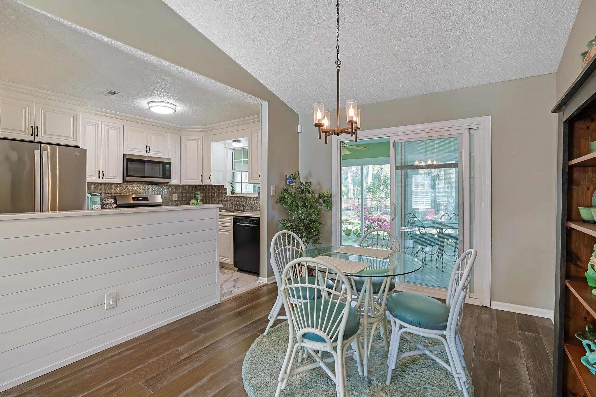 Introducing this enchanting 2 bedroom 2 bath home located in the popular Woodlake Village a 55+ community. This captivating home comes with wood look LVP & tile flooring, a comfortable living room with a vaulted ceiling along with a gas fireplace, and a dining area that showcases access to the delightful sunroom with 4 sliding glass doors. The kitchen includes a stainless steel appliance package, a matching black dishwasher, quartz counter tops, ample cabinet spaces, and easy access to the practical laundry closet. The peaceful primary bedroom features a large walk-in closet, an additional smaller closet, private access to the primary bath that offers a vanity with a single sink, comfort station, and a timeless tub/shower combo. This stylish home is completed with an additional bedrooms, full guest bath, a large back yard with a relaxing back patio, and a single car attached garage. This home affords you easy access to the beach and golfing along with all of the other activities and happenings in Myrtle Beach & Murrells Inlet including fun eateries, award winning off-Broadway shows, public fishing piers, Marsh Walk, and intriguing shopping adventures along the Grand Strand. Conveniently located to your everyday needs, including grocery stores, banks, post offices, medical centers, doctors offices, and pharmacies. Check out our state of the art 3-D Virtual Tour. Floor plans are generated from a virtual tour camera and are for estimate purposes only. Square footage is approximate and not guaranteed. Buyer responsible for verification of all information.