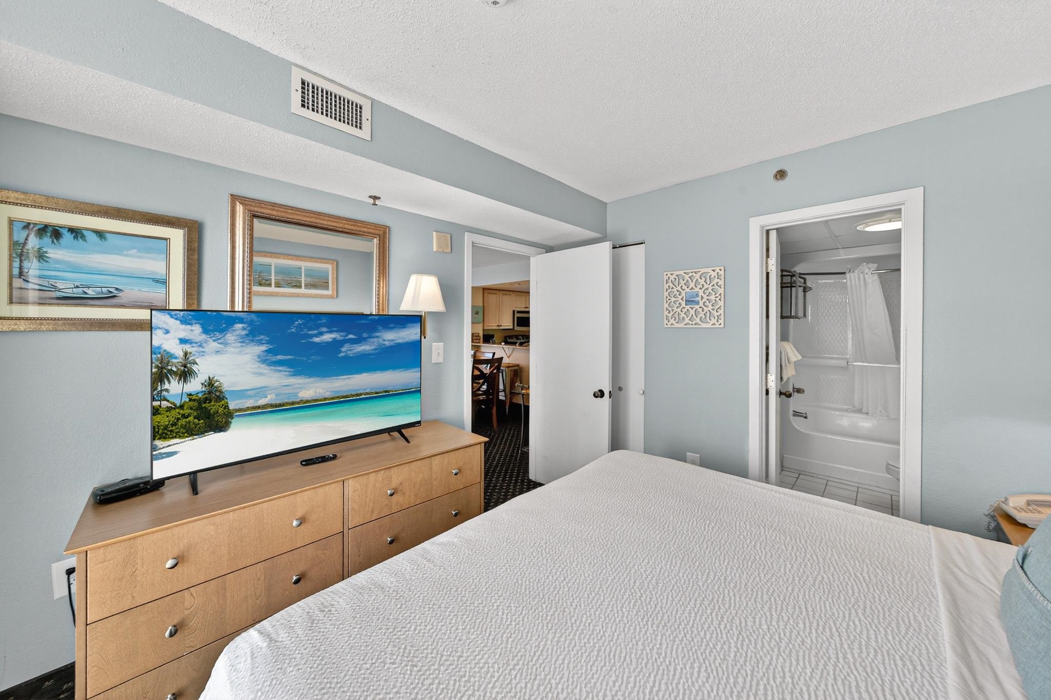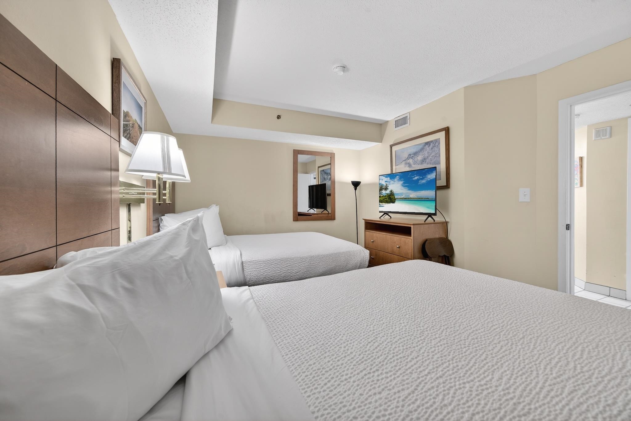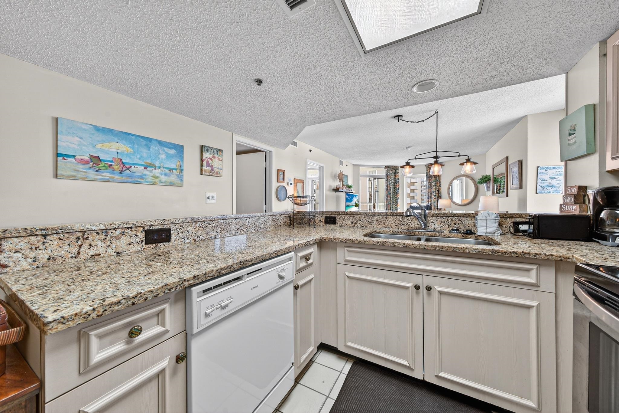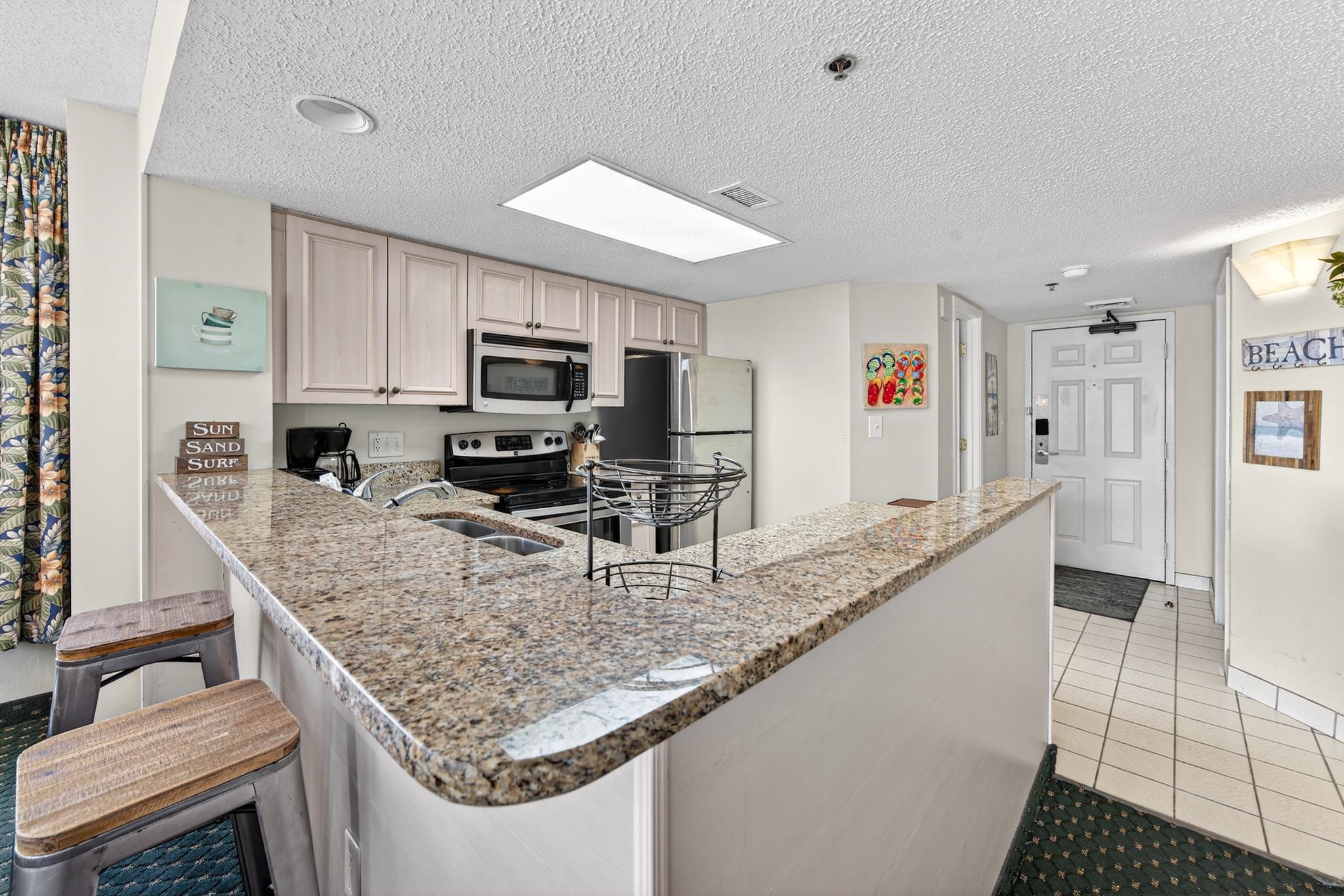 This well-maintained 2 Bedroom 2 Bath end unit is ready for the new owner! Granite counter tops in the kitchen and baths. The extra window in the dining room brings in plenty of natural light while offering beautiful pond views. Whether you are looking for a vacation home, primary residence or an investment property, this unit is a must-see! The Resort sits on 10 acres and features many amenities: 5 outdoor pools, 2 indoor pools, 12 Jacuzzis, lazy river, an oceanfront restaurant/lounge, fitness room, game room, fire pit, Tiki Bar by the pool, Starbucks cafe, and much more.
