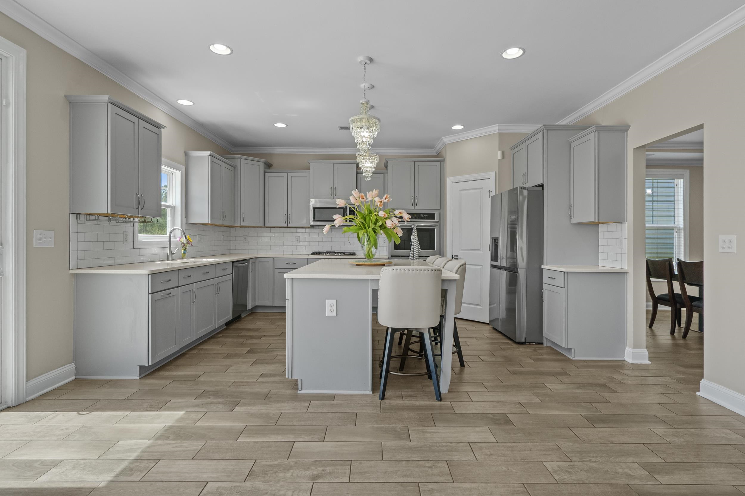 Welcome to 5658 Camilla Ct, a stunning 6 bedroom, 4 bathroom home offering over 4,200 heated square feet of thoughtfully designed living space in the heart of The Farm at Carolina Forest. Situated on an oversized 0.35 acre cul-de-sac lot backing to a private wooded backdrop with no rear neighbors, this home delivers the space, style, and upgrades today's buyers are looking for. From the moment you arrive, the professionally landscaped curb appeal with curbed flower beds, mature plantings, and a grand three-car garage complete with an EV charger sets the tone. Step inside and you will immediately notice the large format tile flooring that flows throughout the main living areas, giving the home a clean, polished look from room to room. The formal dining room features a tray ceiling with crown molding and a designer chandelier, while the spacious family room opens directly to the backyard through a glass slider, making indoor-outdoor living effortless. The kitchen is the true heart of this home. Custom gray shaker cabinets, quartz countertops, a subway tile backsplash, gas cooktop, double wall ovens, and a center island with bar seating make this space as functional as it is beautiful. A built-in wine bar adds a custom touch that sets this kitchen apart, and crystal pendant lighting brings an elevated, designer feel throughout. The bathrooms feature granite countertops, and a tankless hot water heater means you will never run out of hot water no matter how many people are in the house. The first floor also features a bedroom and full bath, perfect for guests or multi-generational living. Upstairs you will find the primary suite, four additional bedrooms, a dedicated laundry room, and a massive loft that serves as a second living space, media room, or play area the flexibility is unmatched. Step outside to one of the largest backyards in the neighborhood. The extended concrete patio offers generous space for outdoor dining, entertaining, and relaxing, all surrounded by a fully fenced yard with an irrigation system keeping the lawn looking its best year round. The peaceful wooded view and total privacy with no rear neighbors make this backyard a true retreat. This is a natural gas community, giving you the efficiency and performance that today's buyers prefer for cooking, heating, and more. The Farm at Carolina Forest is one of the most amenity-rich communities on the Grand Strand, offering two resort-style pools, a fitness center, two clubhouses, a basketball court, and bike lanes and sidewalks throughout, all for a low monthly HOA fee. Award-winning Carolina Forest schools, shopping, dining, and the beaches of the Atlantic Ocean are all just minutes away. This one has the size, the upgrades, and the lot to stand out. Schedule your showing today!