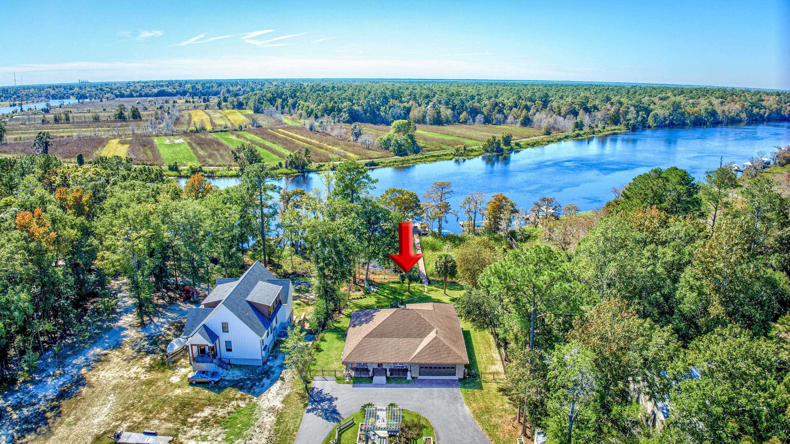 All brick home with 3 large bedrooms and 3 full bathrooms. Open floor plan, custom cabinetry, Thermador appliances, Carolina room, heated inground saltwater pool, 60X40 detached garage (conditioned, plumbed, 6 oversized doors), 1.1 acres overlooking the Majestic Black River. Private dock, rare 2) 10,000 lbs boat lifts. Fenced-in yard, U-shaped asphalt drive, custom garden, pergola, 1000 sq ft annex with bath and cabinetry, and much more. Please note: Listing agent is a co-owner of home.