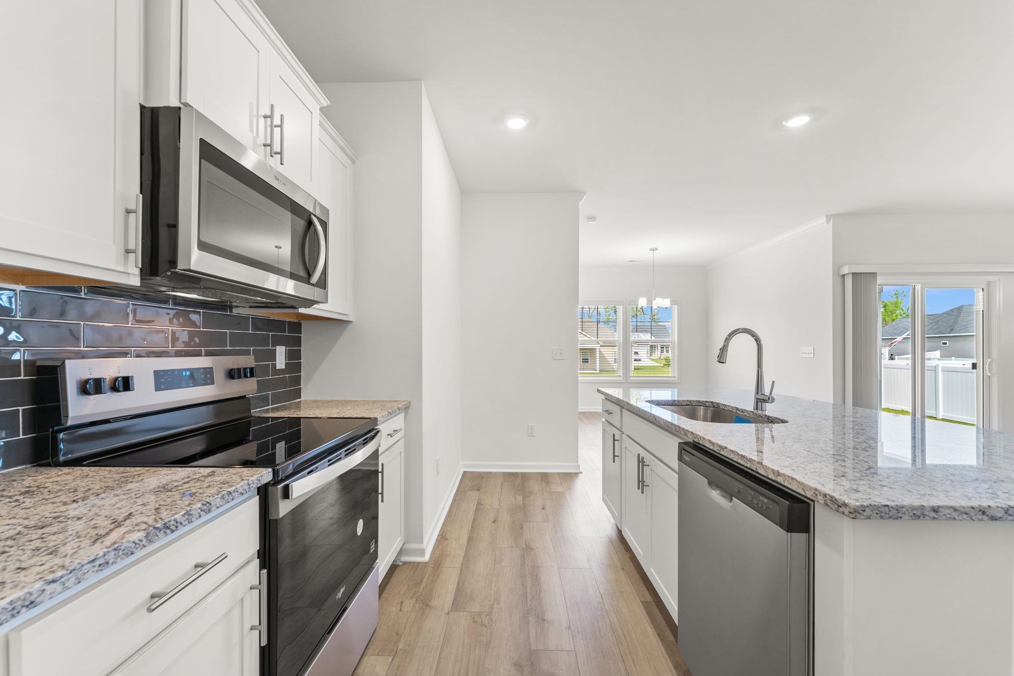 Welcome to this brand new one level home with a wonderful open space concept. The kitchen boasts granite countertops, oversized island, with plenty of cabinet space. The kitchen also has stainless appliances including a side by side refrigerator. The home owners suite is at the rear of the home and has a wonderfully appointed master bathroom space with dual sinks, walk in shower and an abundance of closet space. The open living room/dining room offers a very generous space for family gatherings and entertainment. LVP Tile can be found throughout this area. Off the back of the home features a covered patio that offers peaceful relaxation. Seller upgrades include refrigerator, window treatments, gutters. washer/dryer, storage system in garage. The concrete patio, driveway and garage floor have all been sealed. Fresh mulch recently placed. Lots of value with this home!