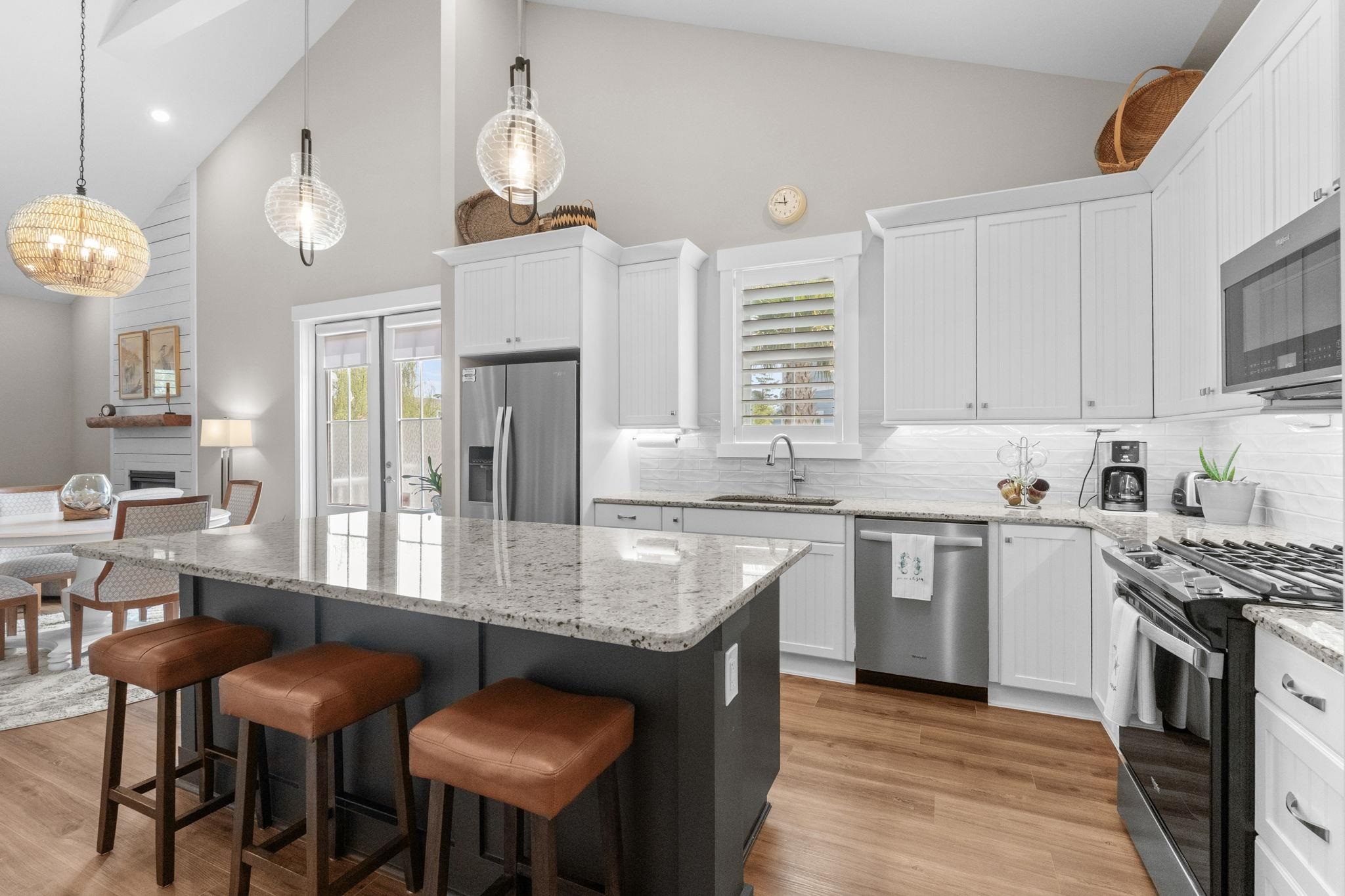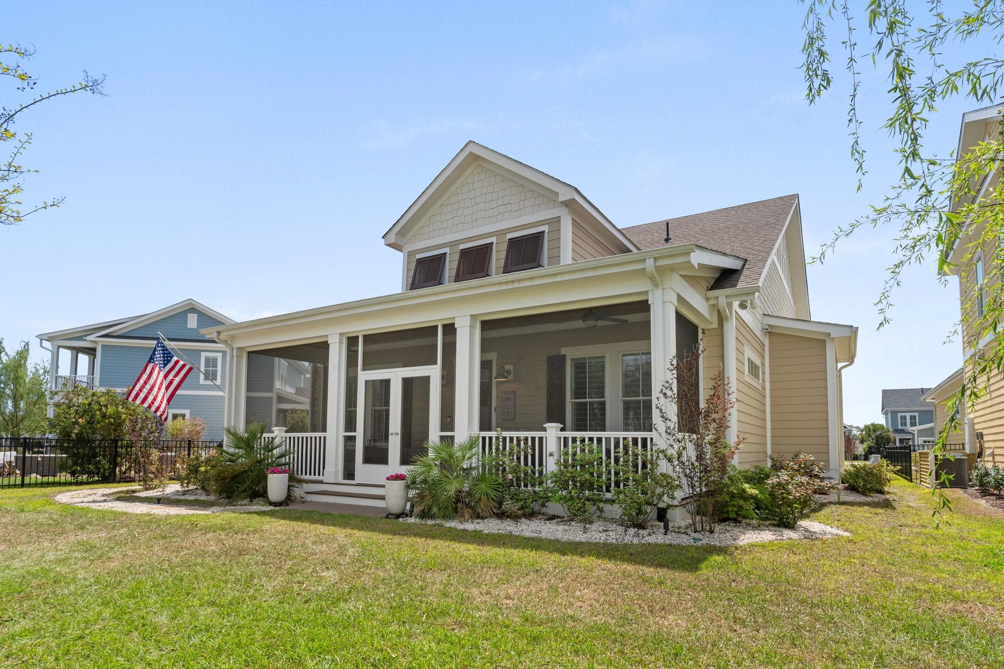 Refined Coastal Home in Living Dunes! A must see in this prestigious Grande Dunes community located just half a mile from the ocean! This gorgeous one level, pond-view Southport model sits on a quiet cul-de-sac and offers a rare blend of privacy, comfort, and style with 3 bedrooms and 2.5 baths. Enjoy tranquil water and sunset views from the screened front porch, a perfect place to unwind while enjoying the sound of fountains and views of local wildlife. The open-concept layout with high vaulted ceilings is centered around a cozy natural gas fireplace features a well-appointed kitchen with granite countertops, 42 custom cabinetry, stainless steel appliances, and a natural gas range. The private primary suite is thoughtfully separated from the guest bedrooms and includes tray ceilings, two walk-in closets, and a spacious bath with a tiled shower. The two additional bedrooms feature a well-appointed Jack and Jill bath with dual vanities, offering both comfort and convenience for guests. The attached two-car garage leads to a spacious mudroom/foyer for added convenience. The fenced yard and patio are perfect for BBQ and entertaining. Built with quality in mind, the home includes 2x6 construction, spray foam insulation, tankless water heater, impact-resistant windows, GAF Timberline HDZ roofing, custom cabinetry, and a smart home system. The Living Dunes offers a beautiful clubhouse, large pool, miles of walking trails, putting green and pocket parks. Living Dunes is located right by a top rated hospital, medical offices and pharmacies with a multitude of quaint shops, grocery stores and restaurant, and golf courses close by. Residents also enjoy access to the Grande Dunes Ocean Club, a year round premier oceanfront beach club offering direct beach access, entertainment, fine dining, large pool with outdoor grill and bar, kiddie pool, hot tub and 3 story clubhouse. This is more than a home its a lifestyle. Schedule your private tour today and experience coastal living at its finest! All measurements and square footage are approximate and not guaranteed. The buyer is responsible for verification.