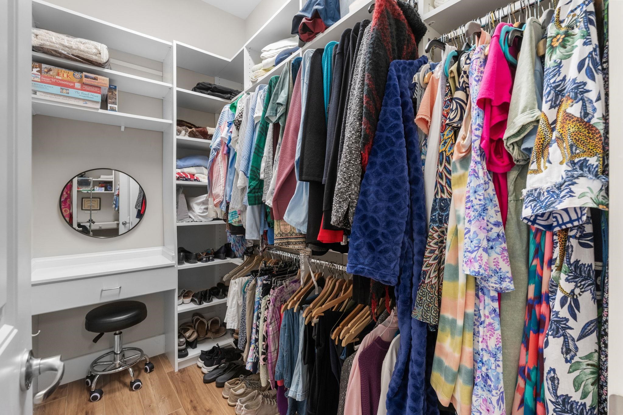 Interior Features: Attic, CeilingFans, DualSinks, MainLevelPrimary, PullDownAtticStairs, PermanentAtticStairs, SeparateShower, Vanity, WalkInClosets, WindowTreatments, BreakfastBar, BedroomOnMainLevel, EntranceFoyer, KitchenIsland, StainlessSteelAppliances, SolidSurfaceCounters
