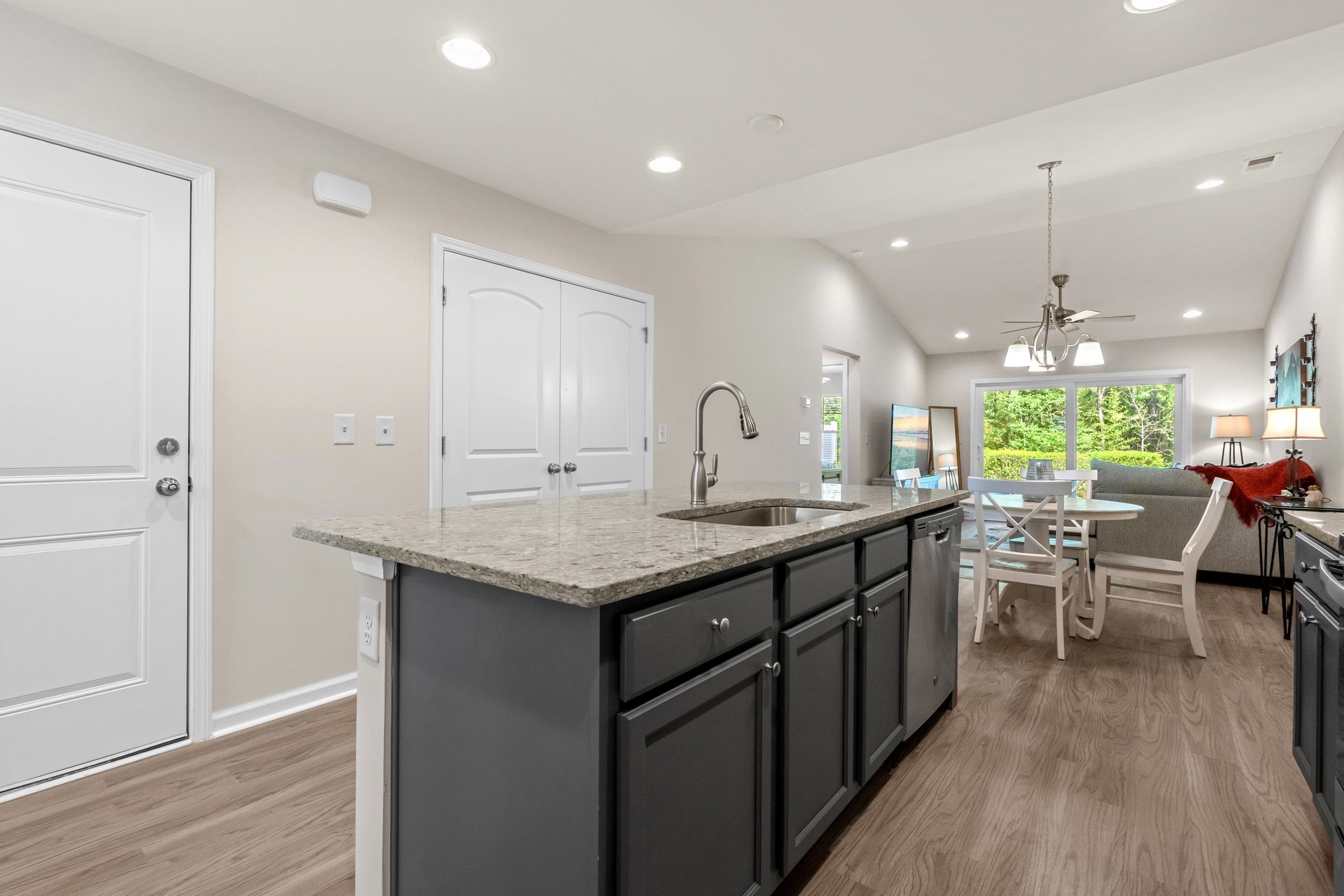 Welcome to easy, low-maintenance living in this beautifully maintained 3-bedroom, 2.5-bath interior townhome built in 2020, offering 1,353 heated square feet and approximately 1,700 total square feet of thoughtfully designed space. The primary suite is conveniently located on the first floor, providing privacy and ease of living, while upstairs features two spacious bedrooms, a full bath, and a large storage areaperfect for keeping everything organized. The open-concept living area flows seamlessly into a well-appointed kitchen featuring solid surface countertops, ideal for both everyday living and entertaining. Step outside to your private back patio overlooking peaceful wooded views, creating the perfect spot to relax and unwind. This home also includes a private garage and comes fully equipped with all appliances conveying, making it truly move-in ready. The HOA covers an impressive list of services including internet, cable, pest control, garbage, exterior maintenance, and insuranceallowing you to enjoy a worry-free lifestyle just minutes from the beach, shopping, and dining. Whether you're looking for a primary residence, second home, or investment opportunity, this property checks all the boxes.