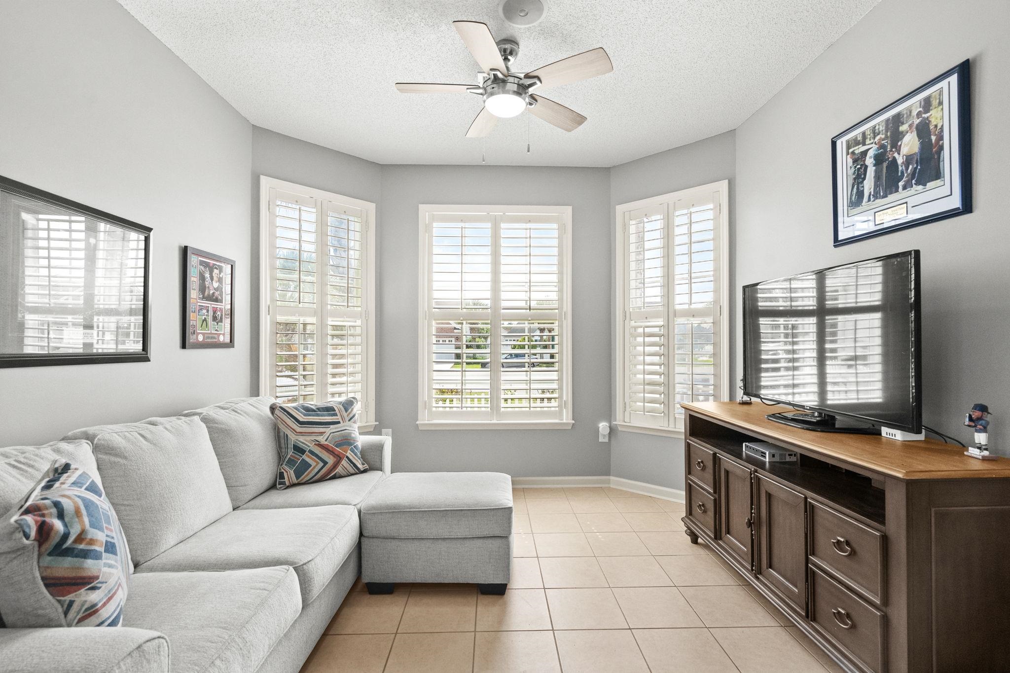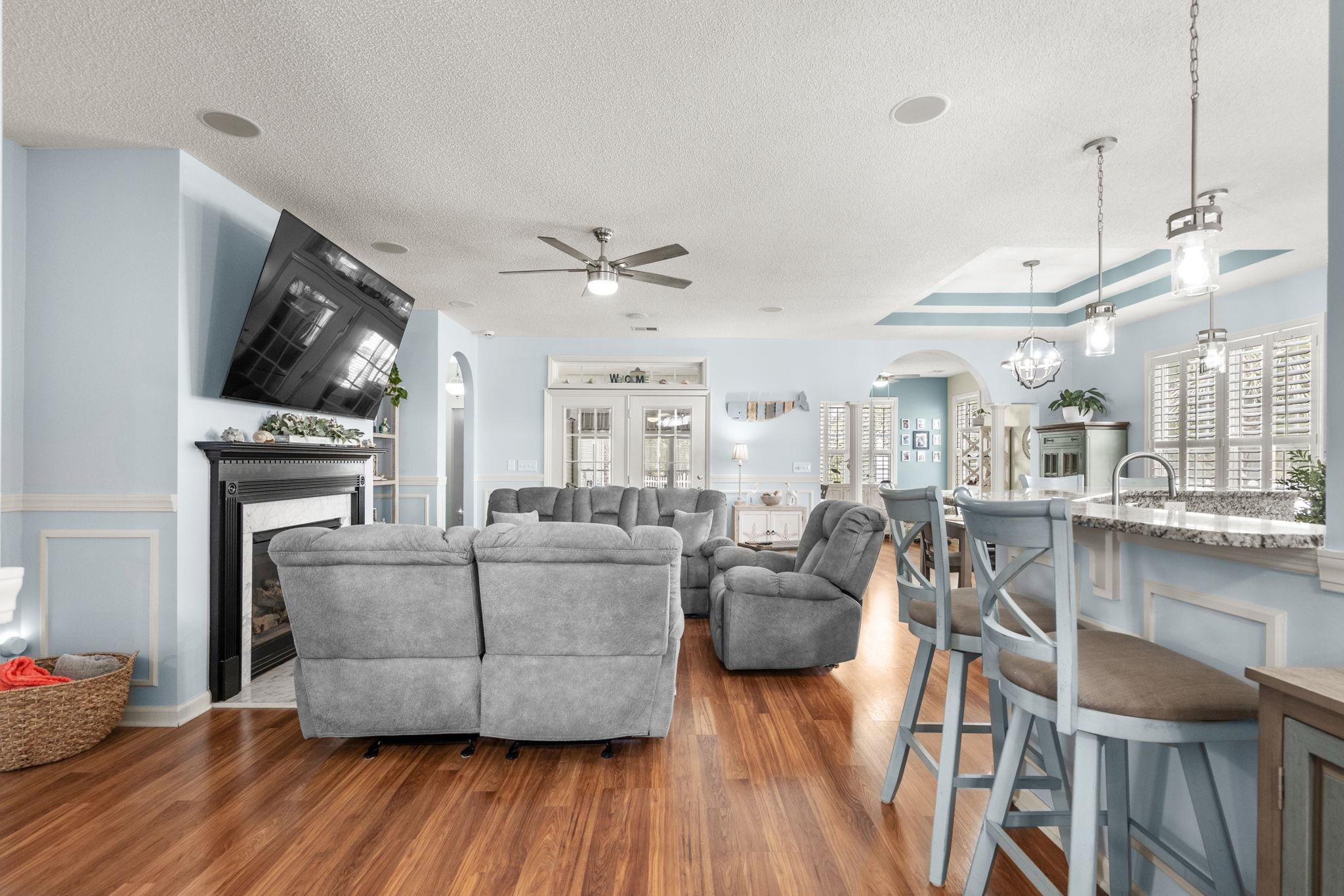 FamilyRoom: CeilingFans, Fireplace