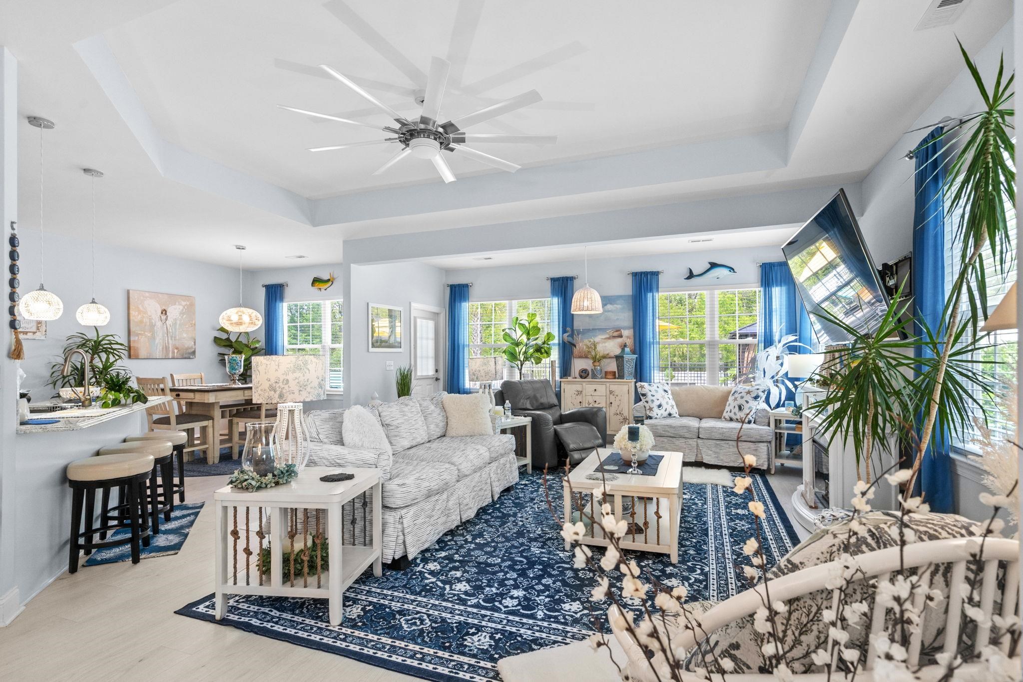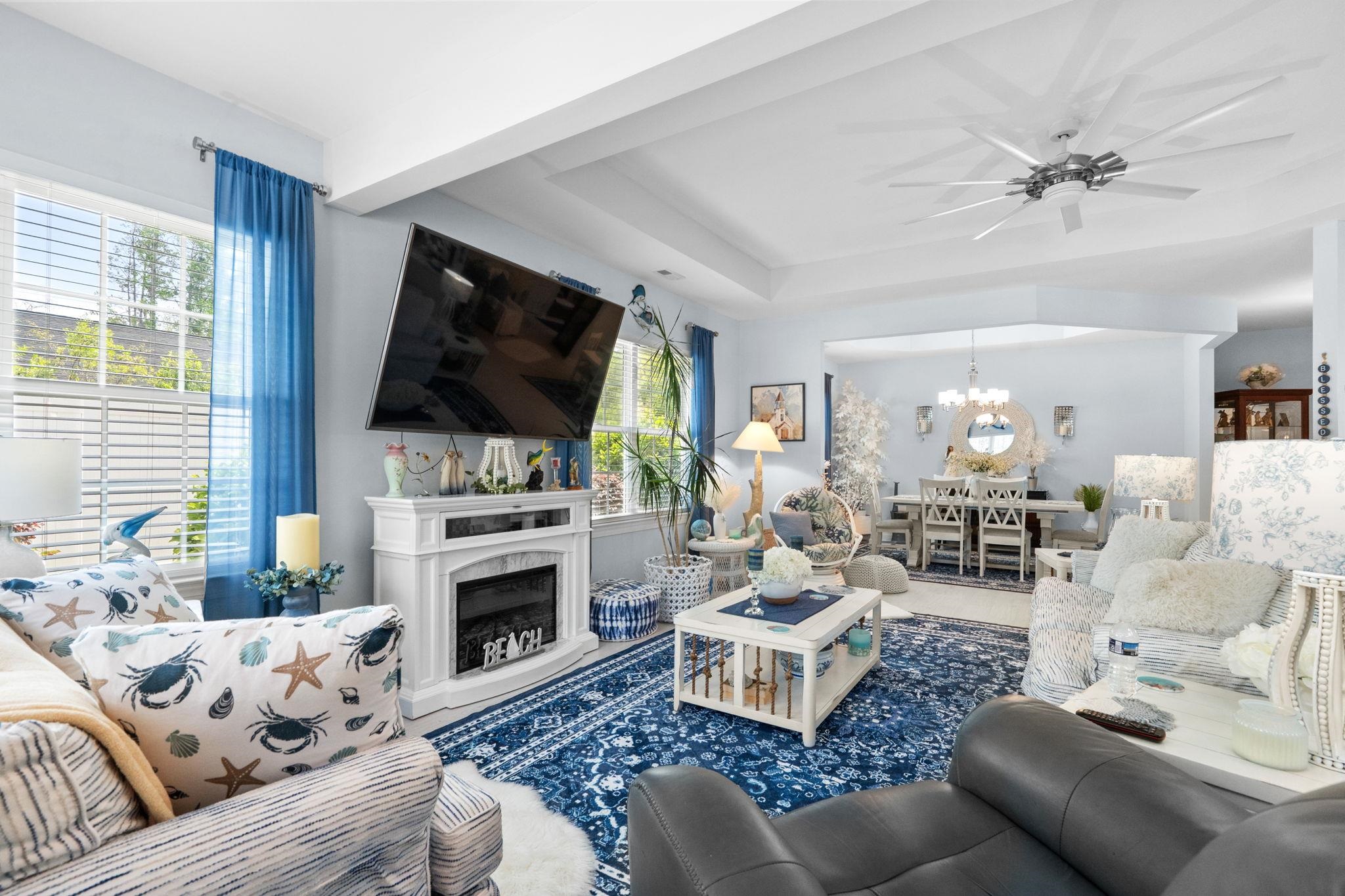 LivingRoom: TrayCeilings, CeilingFans, Fireplace