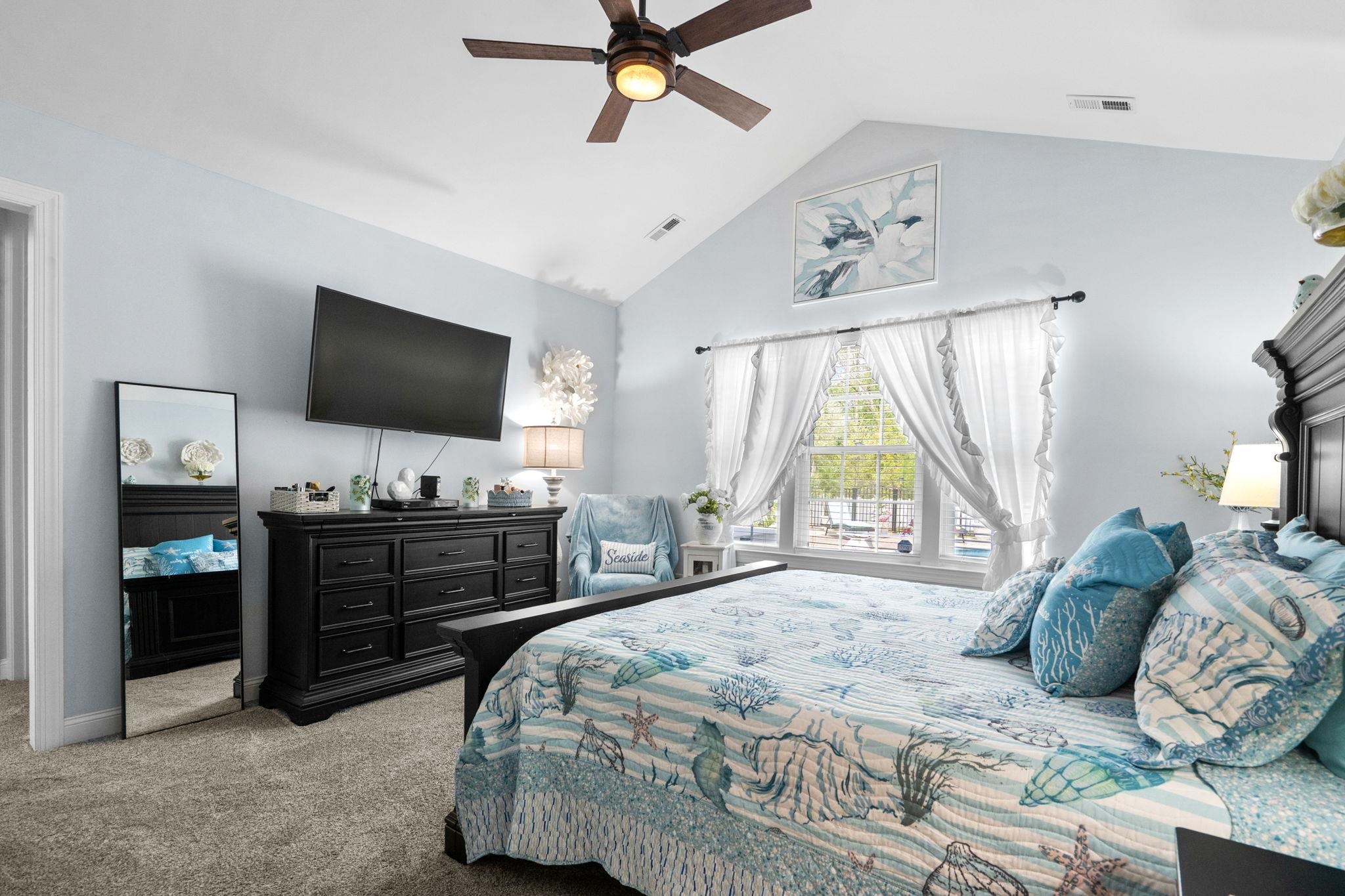 PrimaryBedroom: CeilingFans, MainLevelPrimary, VaultedCeilings, WalkInClosets