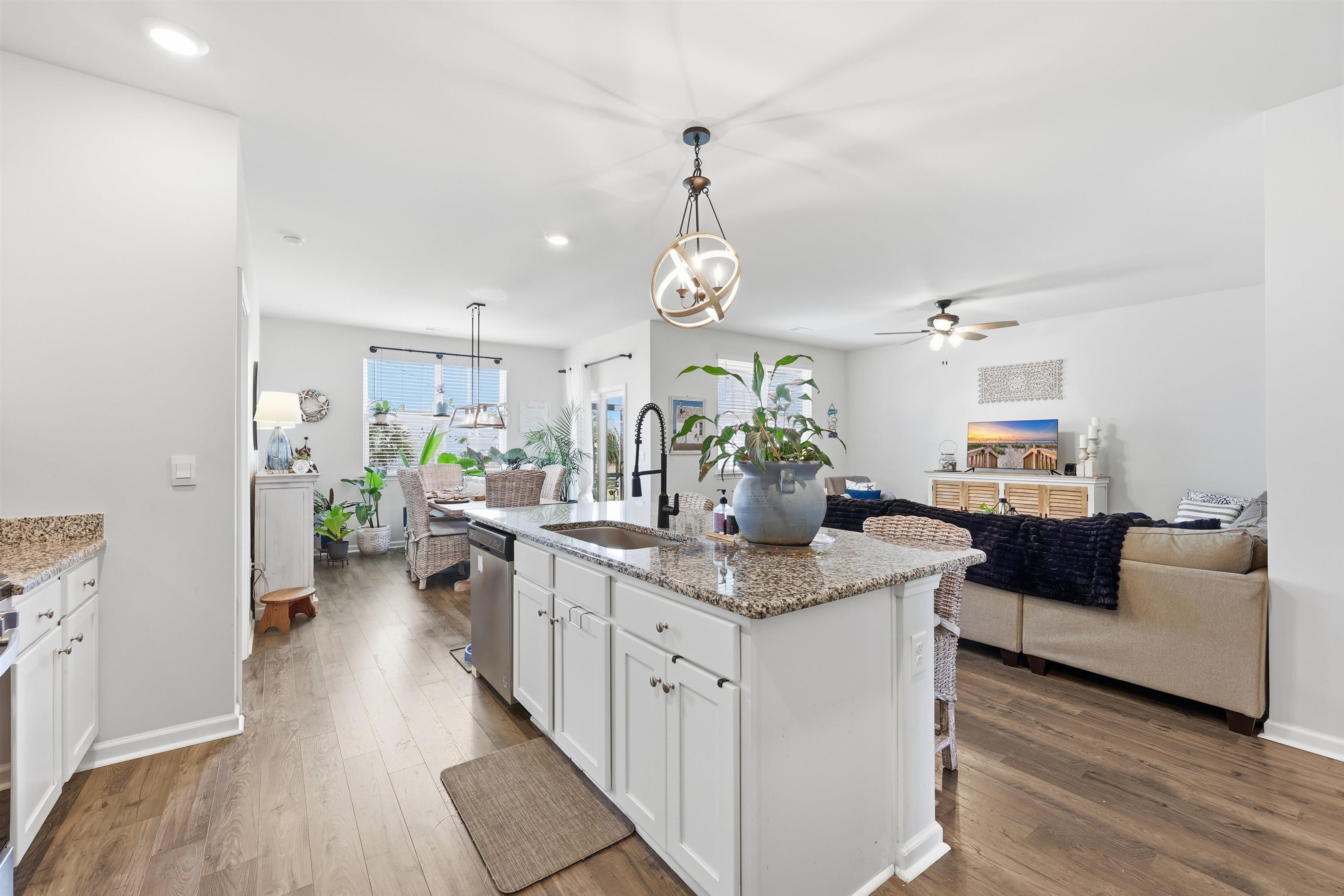 The Aria floor plan offers easy, comfortable living designed to fit every season of life whether youre stepping into homeownership for the first time or looking to simplify with a thoughtfully designed layout. The open living and kitchen area creates a welcoming space thats perfect for hosting friends or enjoying quiet evenings at home. Youll love the stylish finishes, including painted cabinetry, granite countertops, stainless steel appliances, and durable wood-look flooring throughout the main living spaces. Tall ceilings enhance the airy feel, while a spacious pantry provides plenty of storage. The split-bedroom layout offers added privacy, with a serene primary suite tucked away from the secondary bedrooms. Step outside to a covered back porch overlooking a peaceful pond view even better, the yard is fully fenced, making it ideal for pets, play, or simply relaxing and enjoying the scenery. This home is also equipped with smart home technology, allowing you to control features like keyless entry and video doorbell access with ease modern convenience designed to keep up with your lifestyle. Located in a community known for its exceptional amenities, this property truly combines comfort, style, and convenience in one beautiful package. Call to book your private showing asap!