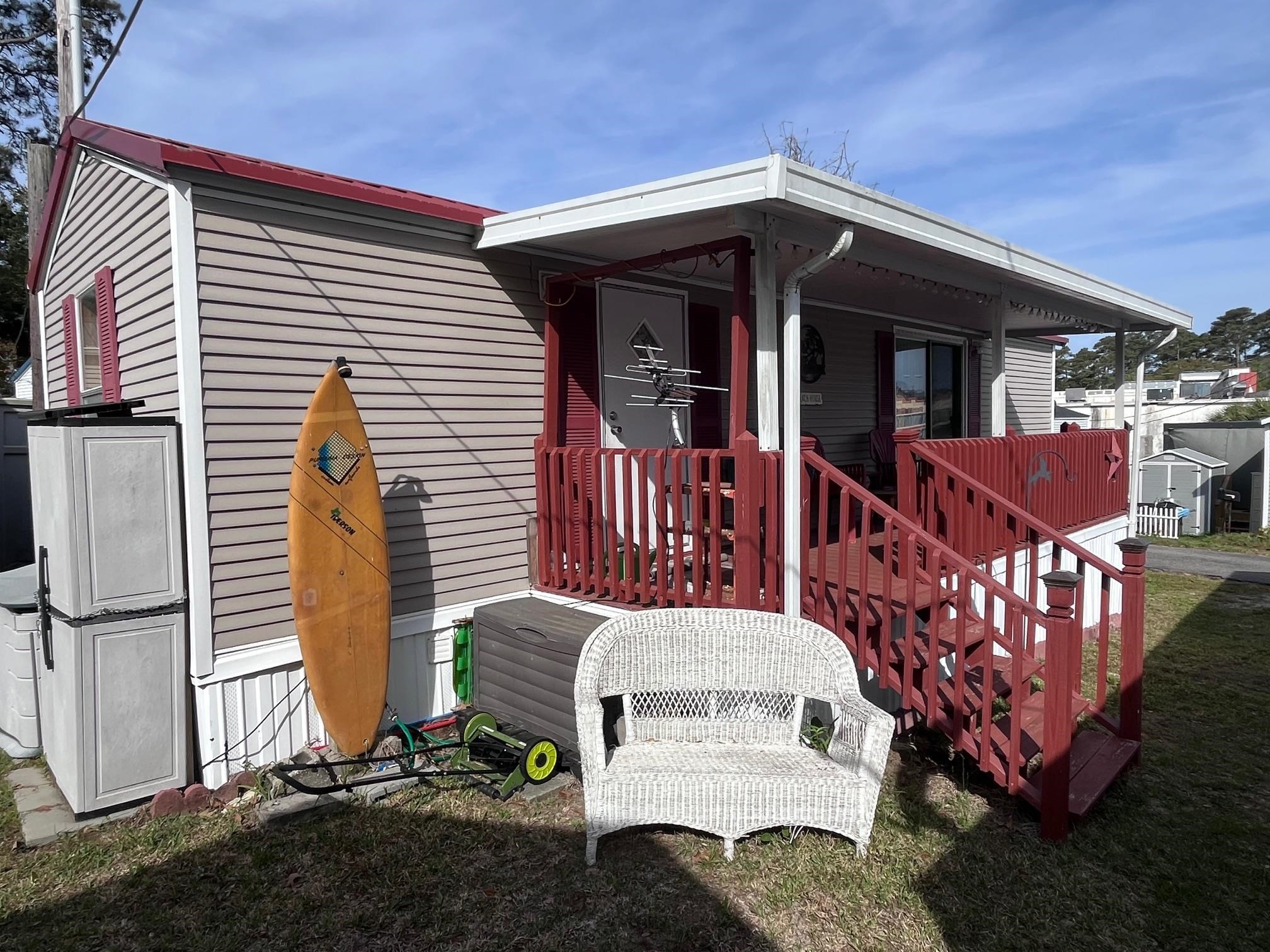 A perfect coastal escape just steps from the shoreline, this charming 2-bedroom, 1-bath vacation home in Ocean View Mobile Home Park offers the ideal blend of comfort, convenience, and classic Myrtle Beach charm. Just a short stroll brings you to the sand and surf, making spontaneous beach days effortless. Featuring 480 sq ft of well-designed living space, split bedrooms, laminate/carpet flooring, and a bright, open layout perfect for relaxing after a day in the sun. A private deck extends your living space outdoors, ideal for morning coffee, evening cocktails, or simply soaking in the coastal breeze. This inviting beach-area home captures the essence of Myrtle Beach livingsimple, sunny, and steps from the ocean. If you're dreaming of a laid-back coastal lifestyle, this property is ready to welcome you! This home is on leased land so contact the listing agent today for more details.