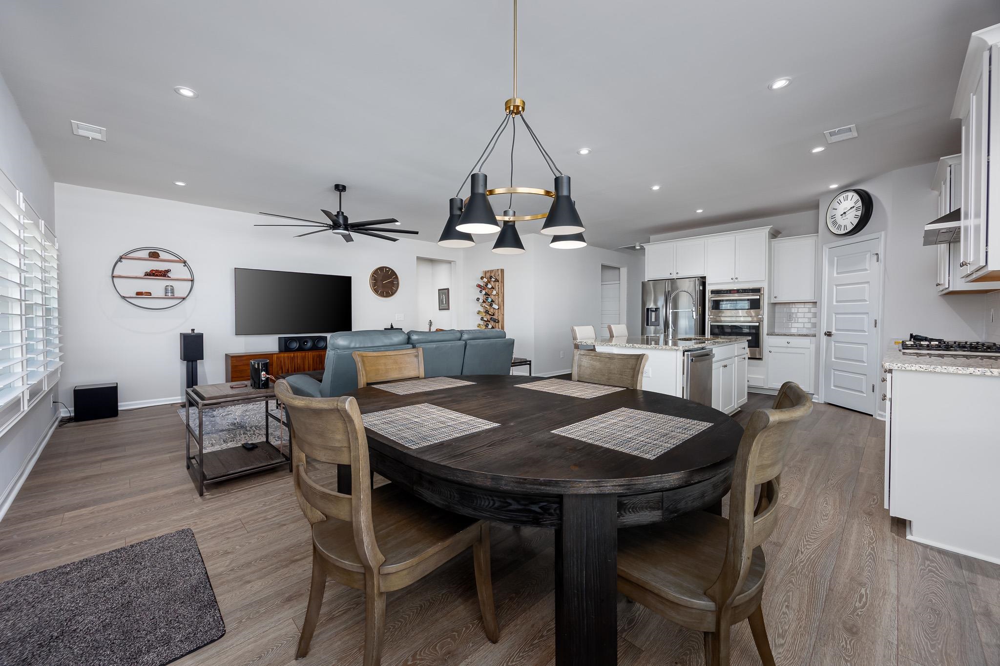 Interior Features: Attic, TrayCeilings, CeilingFans, DualSinks, BathInPrimaryBedroom, MainLevelPrimary, PullDownAtticStairs, PermanentAtticStairs, SplitBedrooms, SeparateShower, Vanity, WalkInClosets, WindowTreatments, BreakfastBar, BedroomOnMainLevel, BreakfastArea, EntranceFoyer, KitchenIsland, StainlessSteelAppliances, SolidSurfaceCounters