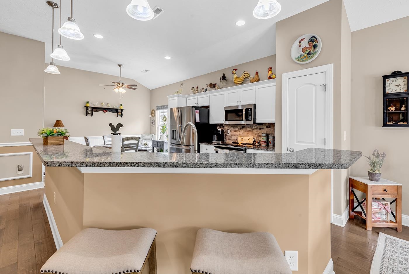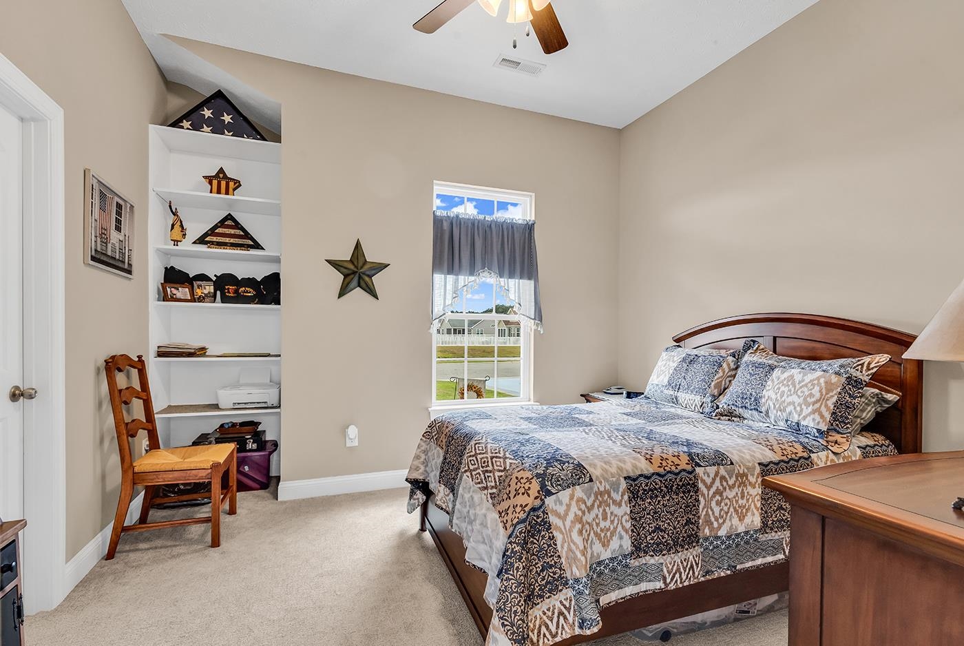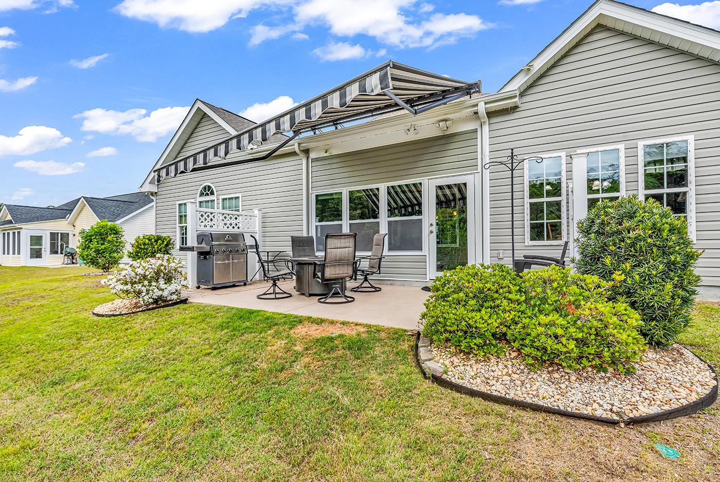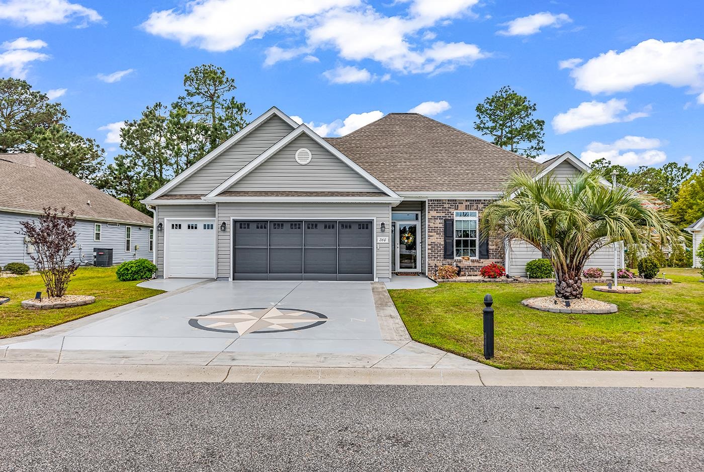 Welcome to this beautifully appointed 3-bedroom, 2-bathroom home located in the peaceful and sought-after community of Turning Pines. Designed with both comfort and style in mind, this residence features a blend of hardwood, tile, and all new carpet flooring, along with impressive vaulted ceilings that enhance the sense of space throughout. Step inside to find a formal dining area perfect for hosting gatherings, while the spacious living room is filled with natural light, creating a warm and inviting ambiance. The thoughtfully designed kitchen is a standout, offering newer stainless steel appliances, granite countertops, and crown-molded cabinetry for a touch of timeless elegance. A bright breakfast nook provides the perfect spot to start your day, and a conveniently located laundry room adds everyday practicality. One of the homes most appealing features is the newly built 14' x 10' sunroom with new windows recently installedan ideal space for relaxing, entertaining, or enjoying quiet moments. The primary suite serves as a private retreat, complete with vaulted ceilings, a ceiling fan, a generous walk-in closet, and an ensuite bath. The bathroom includes a single-sink vanity, linen storage, a comfort station, and a spacious step-in shower for a spa-like experience. Two additional bedrooms offer flexibility for guests, a home office, or hobbies, and a full guest bathroom ensures convenience for all. This home also feature four walk in closets because you can never have enough storage space. Additional highlights include a three-car attached garage, providing ample storage and parking. Outdoors you'll really appreciate the 20' retractable awning, large patio and warm firepit for the cool nights. Situated just a short drive from Myrtle Beach, this home offers easy access to beautiful beaches, top-rated golf courses, dining, entertainment, shopping along the Grand Strand, and everyday essentials such as grocery stores, medical facilities, and more. This exceptional property blends comfort, elegance, and locationmaking it a perfect place to call home.