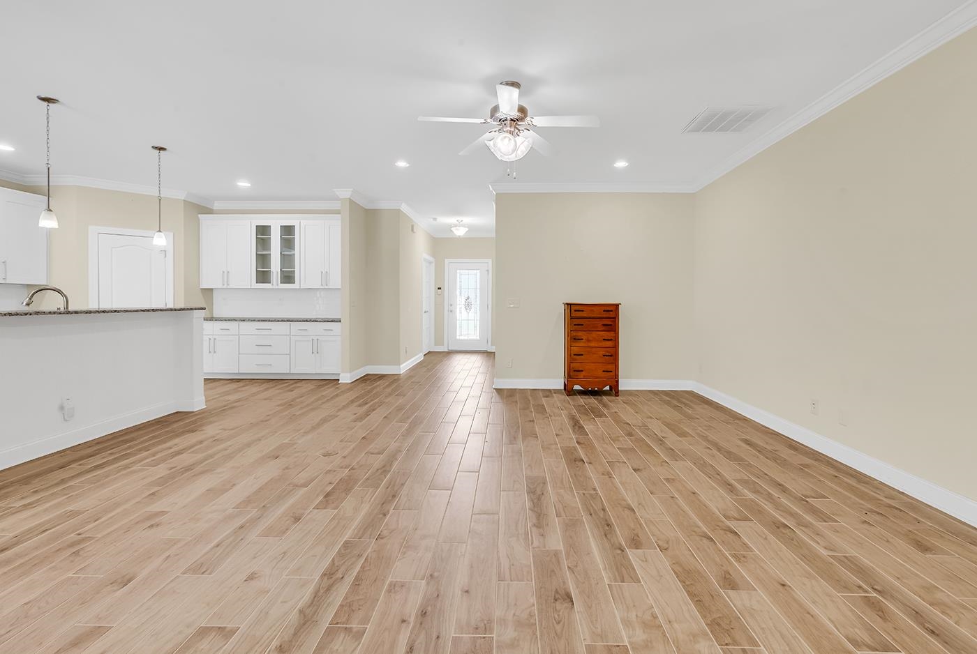 Interior Features: CeilingFans, DualSinks, LinenCloset, MainLevelPrimary, SeparateShower, WalkInClosets, BreakfastBar, BedroomOnMainLevel, StainlessSteelAppliances, SolidSurfaceCounters