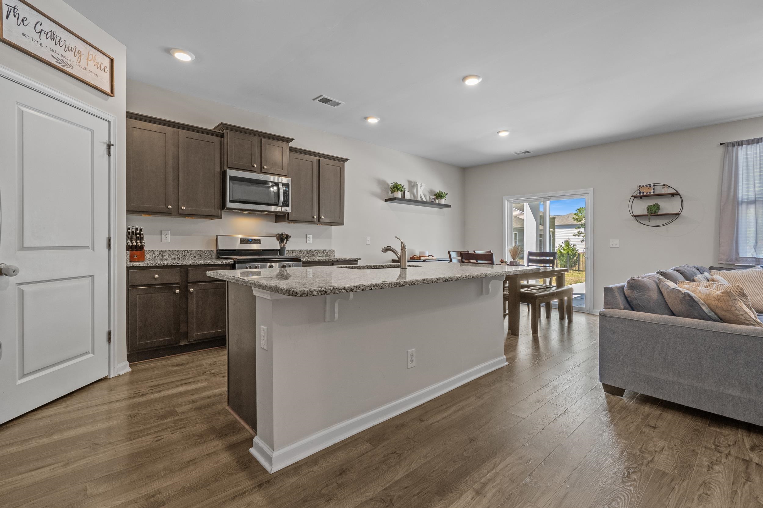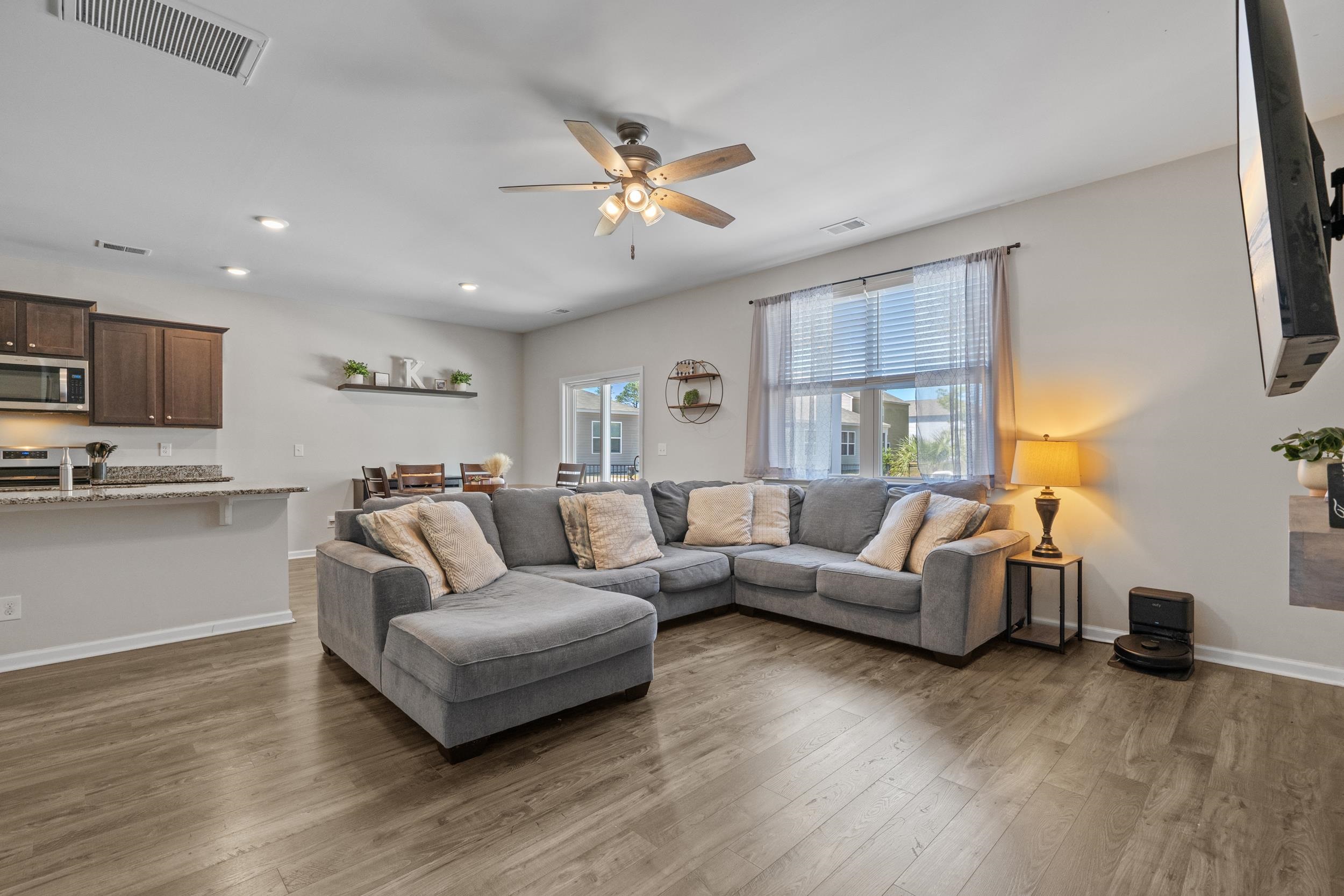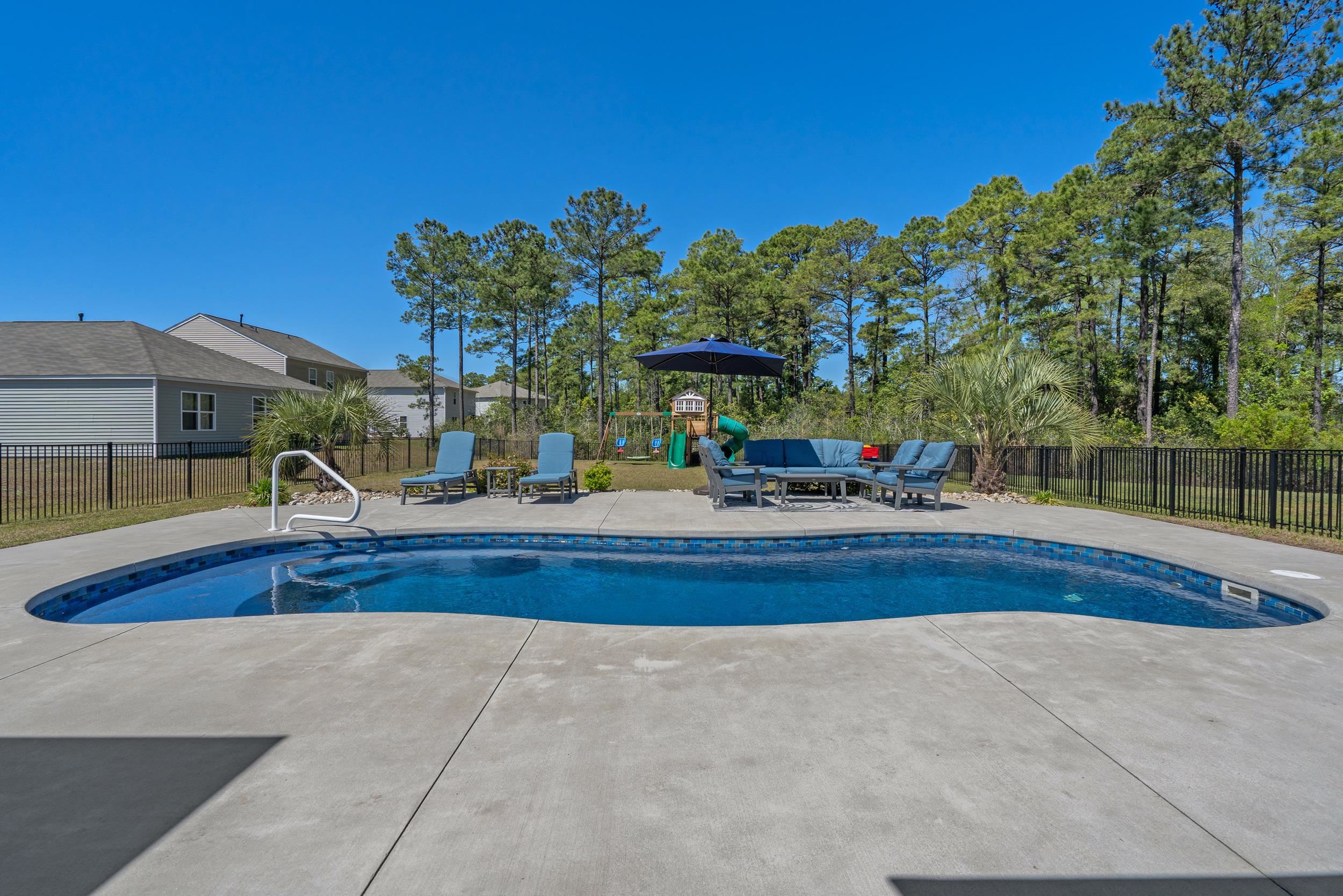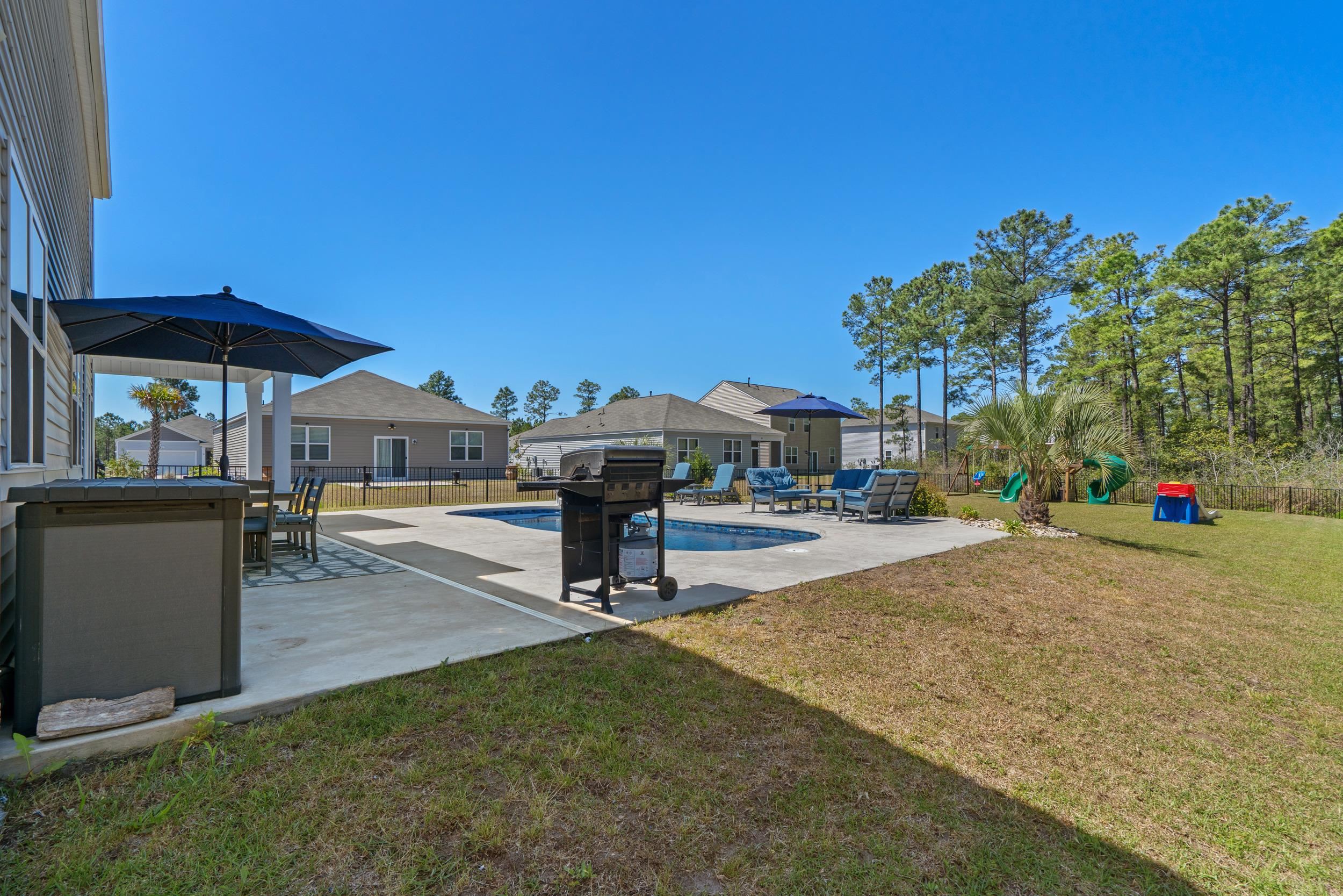 Welcome to this beautifully maintained, better-than new built home tucked away on a quiet wooded cul-de-sac in charming Conway, offering the perfect blend of peaceful country living and coastal convenience. Situated on a spacious lot, this 5-bedroom, 3.5-bath residence features an open and functional floor plan designed for both everyday living and entertaining, complete with a desirable first-floor primary suite providing comfort and privacy, as well as a versatile flex room perfect for a home office, playroom, or additional living space. The kitchen offers solid surface countertops, ample cabinetry, generous prep space, and natural gas cooking, with seamless flow into the main living and dining areas, while the upstairs loft adds valuable flexible space ideal for a media room, home office, or secondary lounge. Enjoy the peace of mind of newer construction without the added expensethis home already includes a fenced yard, private heated and cooled saltwater in-ground pool, landscaping, and window treatments, saving you time and money from day one. Step outside to your own backyard retreat where the pool becomes the centerpiece of everyday livingperfect for summer gatherings, weekend barbecues, or quiet evenings under the Carolina sky. With space for lounge chairs, outdoor dining, and entertaining, the fully fenced yard offers privacy and room to relax or play in your own personal oasis. Located just minutes from historic downtown Conways shops, dining, and riverfront charm, and only a short drive to having your toes in the sand in Myrtle Beach or North Myrtle Beach, this home truly offers the best of both worlds.