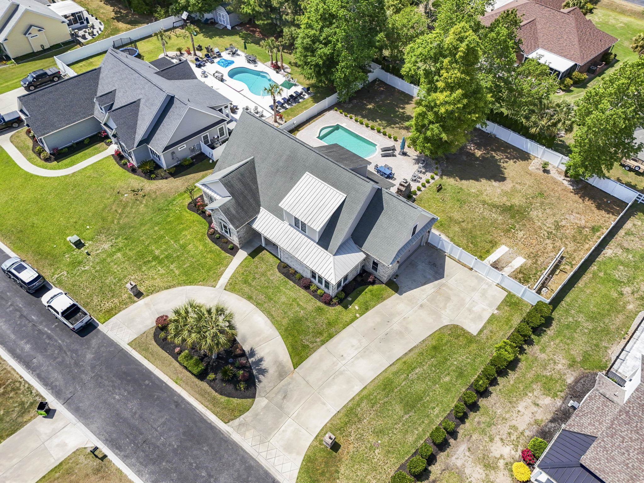 Absolutely stunning custom home located in a gated community, featuring an incredible backyard retreat! From the thoughtfully designed interior to the exceptional outdoor living space, this home truly stands out. Step onto the inviting front porch and into a spacious layout ideal for both everyday living and entertaining. The expansive family room flows seamlessly into the dining area, creating a warm and open atmosphere. The recently remastered kitchen is a standout with beautiful cabinetry, marble countertops, backsplash, stainless steel appliances, a gas cooktop, wall oven, coffee bar and a charming breakfast nook. The first-floor primary suite offers comfort and privacy, complete with dual walk-in closets featuring custom built-ins and a spa-like bathroom with double vanities, a soaking tub, and a walk-in shower. Quality craftsmanship is evident throughout, with tile and wood flooring and tiled showers in every bathroom. Also on the main level are two additional bedrooms, a full bath, powder room, and laundry room. Upstairs provides even more versatile space, including two additional bedroomsone ideal for a home office or gymalong with a loft, full bath, and an impressive theater room. Step outside through the screened porch and experience your own private oasis. The outdoor kitchen, complete with a Brazilian grill, overlooks a sparkling in-ground pool and jacuzzi, all set within a large fenced backyard with plenty of room to play and entertain. This home has been meticulously built and maintained, offering both luxury and functionality. Conveniently located just minutes from all that the Grand Strand has to offer, this is an opportunity you wont want to miss. Schedule your private showing today!
