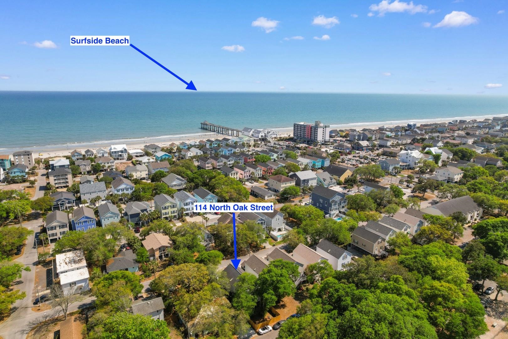 If you've been looking for a place near the beach that actually feels like home?not just a house---114 N Oak Dr in Surfside Beach is one you'll want to see. It's just a short golf cart ride or walk to the ocean, so grabbing your morning coffee and heading to the shore can easily become part of your routine. And with no HOA, there's a sense of freedom here that's getting harder to find. Inside, the home feels bright and easygoing from the moment you walk in. The main living area is open and filled with natural light, making it a comfortable space to relax or have friends over. The kitchen is set up in a way that just works---stainless steel appliances, plenty of cabinets and counter space, and a breakfast bar that tends to become the go-to gathering spot. One of the standout features is that every bedroom has its own full bathroom with tiled showers, which makes a big difference whether you have guests or just want everyone to have their own space. The primary suite, in particular, feels like a true retreat with high ceilings, a large walk-in closet, and a bathroom with double sinks, a walk-in tiled shower, and a whirlpool tub. Newer tankless water heater for renter convenience, and the Paid-Off solar panels and foam insulation in the attic for efficiency and lower electric bills. Outside is where this home really shines. The front balcony is perfect for catching the coastal breeze, while the fenced backyard and covered area underneath the home give you plenty of space to hang out, entertain, or just unwind after a day at the beach. The location also makes everyday life easy---you're just minutes from the Surfside Pier, Murrells Inlet MarshWalk, Brookgreen Gardens, plus tons of great restaurants, golf courses, and shops. All in all, it's the kind of home that makes beach living feel simple, comfortable, and completely within reach.