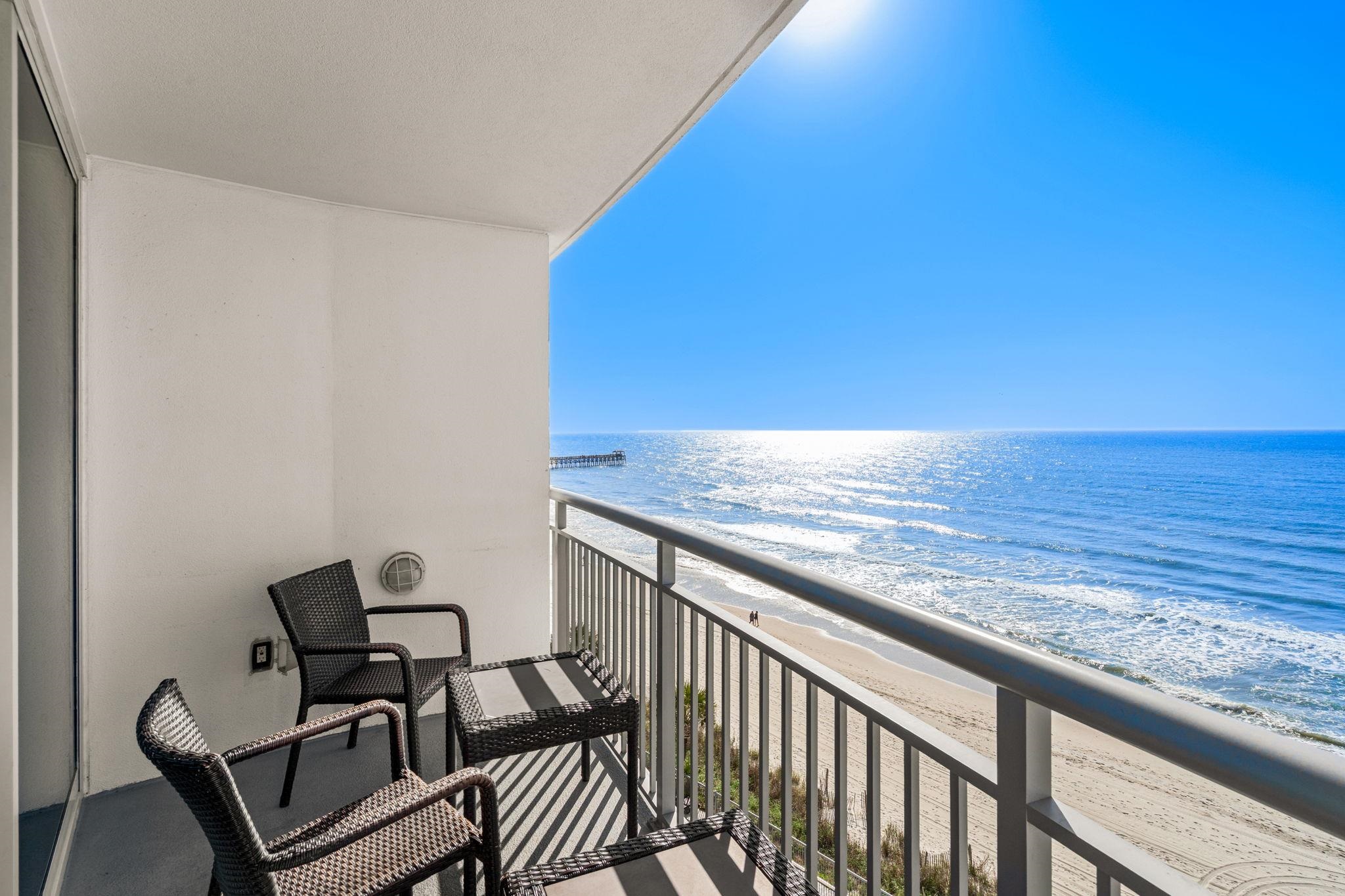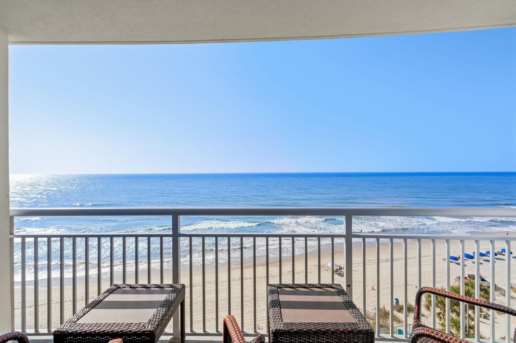 MODERN MIAMI STYLE ART DECO WITH MASSIVE RENTAL POTENTIAL!! Wake up to breathtaking ocean views in this beautifully appointed 2-bedroom, 2-bathroom condo located in the highly desirable Oceans One South Tower in the heart of Myrtle Beach. This spacious unit offers a bright and open layout, designed to maximize both comfort and coastal living. The living area flows seamlessly to your private oceanfront balcony, where you can enjoy panoramic views of the Atlantic and the soothing sound of the wavesperfect for morning coffee or evening relaxation. The kitchen features dark countertops, ample cabinet space, and everything needed for a turnkey rental or personal getaway. The primary suite offers its own private ensuite bathroom, while the second bedroom provides plenty of space for guests, making this an ideal vacation home or income-producing property. Oceans One is known for its modern design and incredible amenities, including indoor and outdoor pools, hot tubs, a lazy river, fitness center, and direct beach access. Located just minutes from the Boardwalk, SkyWheel, restaurants, shopping, and entertainment, this property puts you in the center of it all. Whether you're looking for a vacation escape, investment opportunity, or boththis oceanfront condo checks every box. Buyer is responsible for verification.