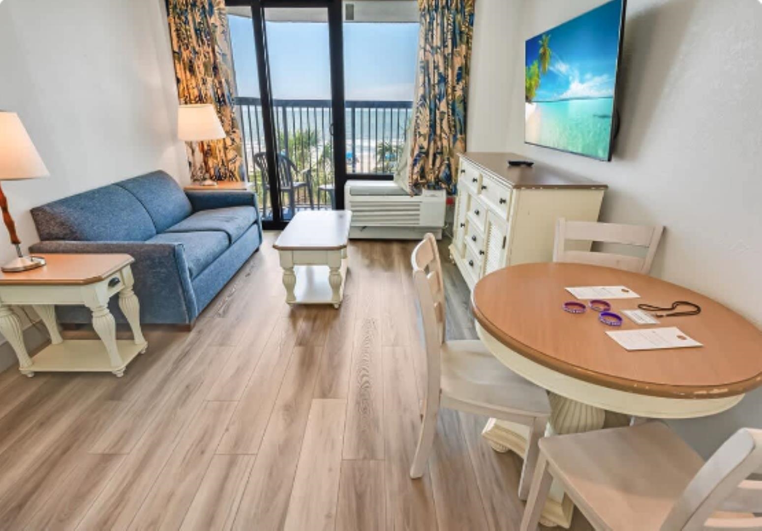 Wake up to the soothing sound of waves and step onto your private balcony to watch the sun rise over the Atlantic---this is oceanfront living at its finest. Located in the Pinnacle Tower at Compass Cove Resort, this beautifully furnished one-bedroom, direct oceanfront condo offers the perfect blend of relaxation, comfort, and investment potential in the heart of Myrtle Beach. Inside, you'll find a bright and welcoming space designed for both personal enjoyment and guest appeal. The full galley kitchen features granite countertops, while the stylish bath offers the same upscale touch. A rare king-bed layout provides added comfort and is highly sought after by vacationers, often generating stronger rental income than comparable units with two double beds. A convenient Murphy bed adds extra sleeping space, making it ideal for hosting family and friends. With a fantastic rental history, this condo is truly turnkey and ready to enjoy or rent from day one. Situated on the second floor, the location couldn't be more convenient. Park on the same level and walk straight into your condo, or take a quick stroll down a single flight of stairs to the pools and the beach. Despite the low floor, the unobstructed oceanfront views from the balcony are simply breathtaking. Compass Cove Resort is known for its impressive lineup of amenities and boasts 720 feet of pristine beachfront. Owners and guests enjoy access to 22 water features, including indoor and outdoor pools, lazy rivers, hot tubs, and kiddie pools. Additional highlights include water slides, a Tiki Bar, Joe's Coffee Bar, the Compass Rose Restaurant, the Crow's Nest, an arcade, fitness center, gift shop, business center, and more. Those participating in the onsite rental program also benefit from convenient front desk services. Whether you're searching for a private coastal escape, a smart investment opportunity, or both, this exceptional oceanfront condo delivers the best of beachside living.