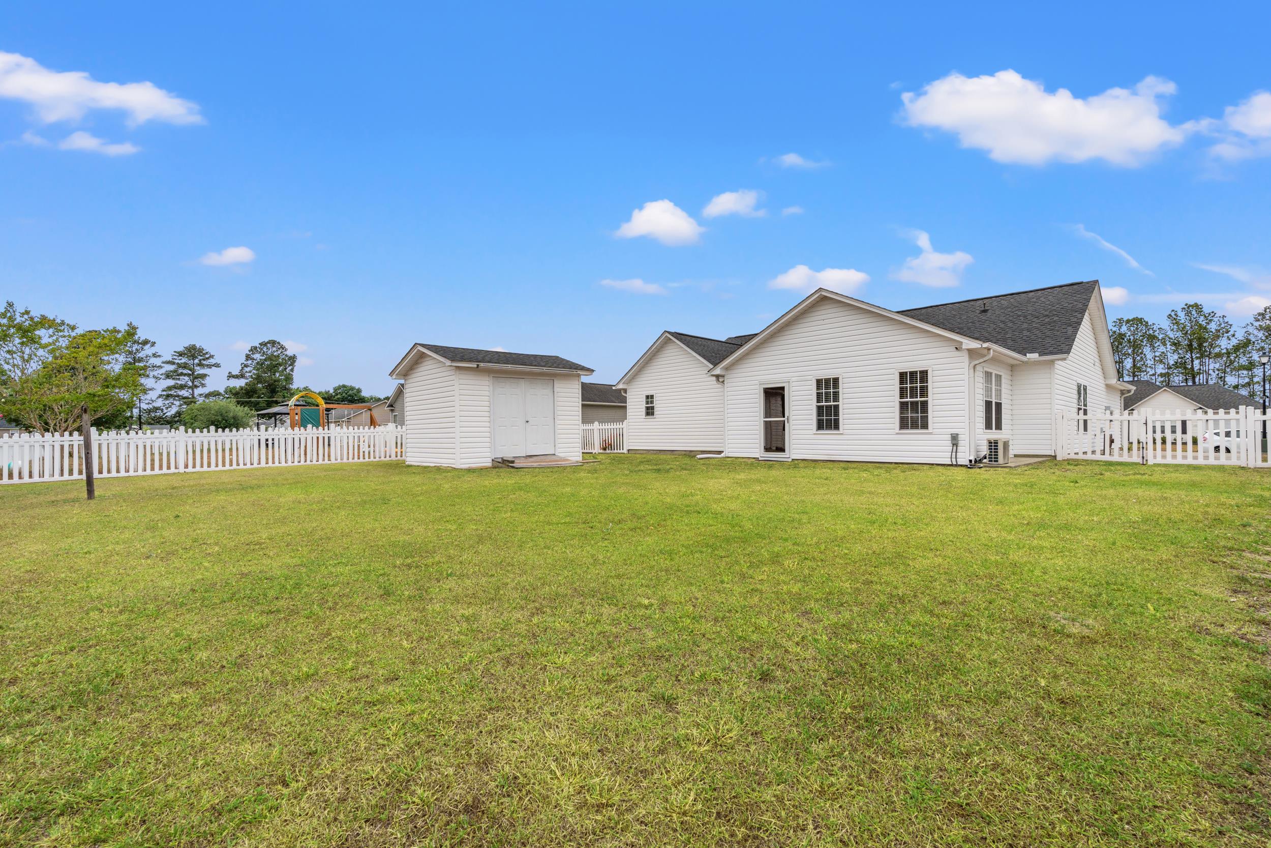 Welcome to the country community of Cottage Creek in Conway! This low HOA community is about 15 minutes to downtown Conway. The home is move in ready with a new roof in 2022, neutral paint throughout, and a fenced back yard. This one car garage home also has additional concrete beside the garage for extra parking when needed. The vaulted ceilings in the living and kitchen area make this home feel much larger than its approximately 1440 heated square feet. In addition to the 3 bedrooms and 2 bathrooms, there is a beautiful addition off the back of the home. With knotty pine walls, its own mini-split HVAC, and access to the back yard, its perfect for a den, craftroom, homeschool room, and more. There is a stick built 10x12 storage building that conveys as well. Since it's located outside of the city limits, you're also going to enjoy lower taxes. Here's your chance to own an affordable, move in ready home. Some images are virtually staged.