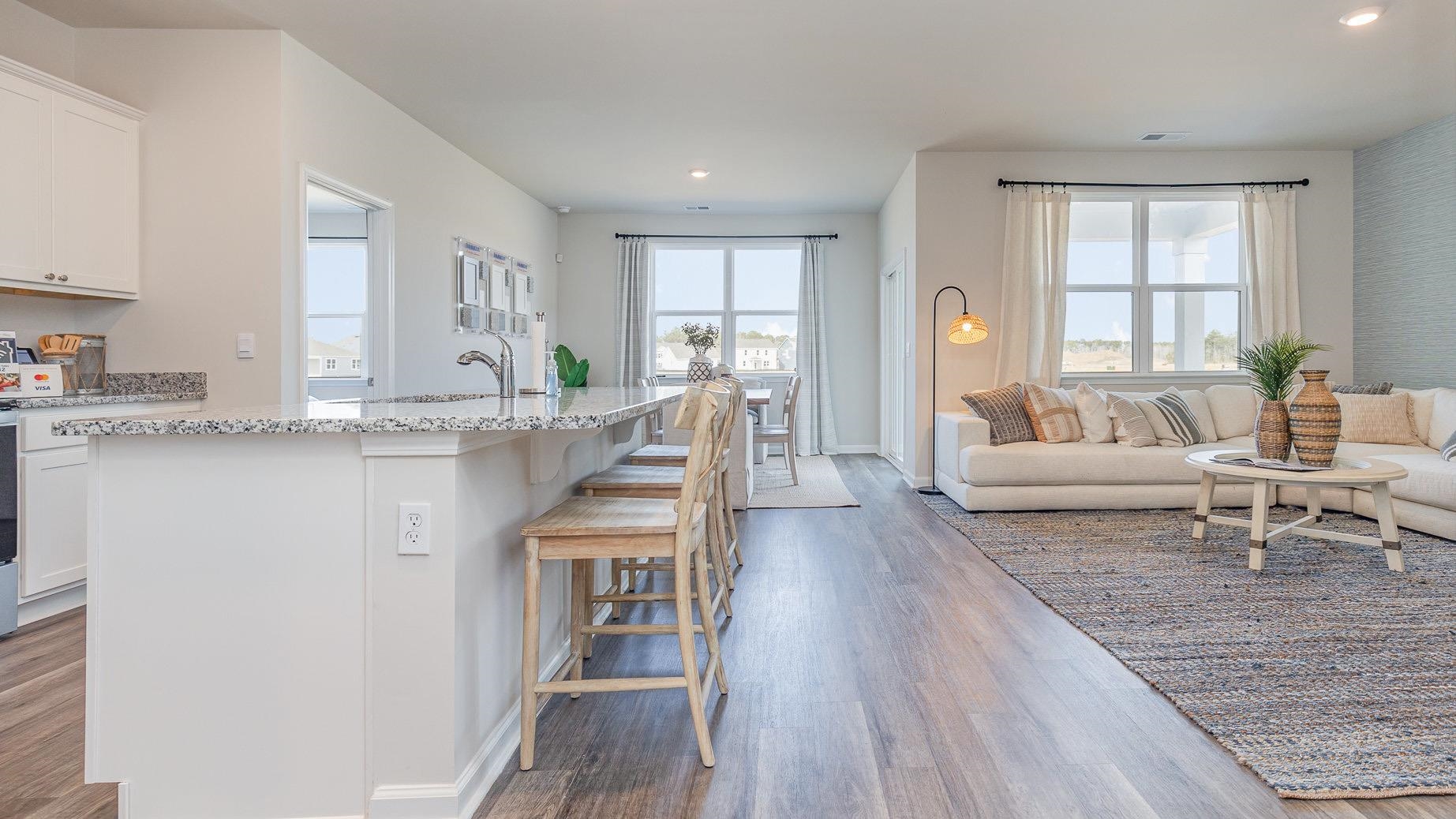 Welcome to Kingston Bay! Located in Conway and minutes from the heart of downtown! Residents will enjoy easy access to local shopping, dining, and entertainment. Conway is a charming historic town with oak tree-lined streets, historic homes, unique shops, remarkable restaurants, and a flourishing art community. You don't want to miss out on this community! This thoughtfully designed one level home is one of our most popular floor plans! With an open concept living room, dining room and kitchen, this home is bright, spacious, and designed for entertaining guest or comfortably interacting. The kitchen features granite countertops, a tile backsplash, 36"" cabinets, a spacious pantry, stainless steel appliances, and island with breakfast bar! Your primary suite awaits off the back of the home with a spacious walk-in closet and bathroom with double sinks, a linen closet and 5' shower. Two secondary bedrooms are at the front of the home providing separation from the primary suite. Enjoy the coastal air from the screened back porch as you wind down in the evening! 2 car garage with garage door opener. This is America's Smart Home! Each of our homes comes with an industry leading smart home technology package that will allow you to control the thermostat, front door light and lock, and video doorbell from your smartphone. *Photos are of a similar Aria home. Pictures, photographs, colors, features, and sizes are for illustration purposes only and will vary from the homes as built. Home and community information, including pricing, included features, terms, availability and amenities, are subject to change and prior sale at any time without notice or obligation. Square footage dimensions are approximate. Equal housing opportunity builder.